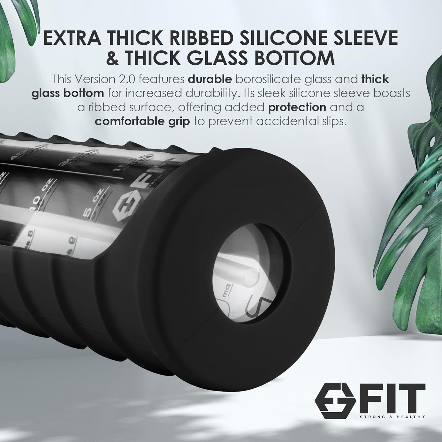 - Patented Design: We listened and worked hard on making this version the best glass water bottle; this version 2.0 is made of strong borosilicate glass and offers a thick glass bottom for added durability; the new stylish extra-thick silicone sleeve features ribbed sides for added protection and an extra comfortable, non-slip grip; our glass water bottles are leakproof, reusable, and an excellent gift for wellness-oriented individuals and fitness enthusiasts of all genders