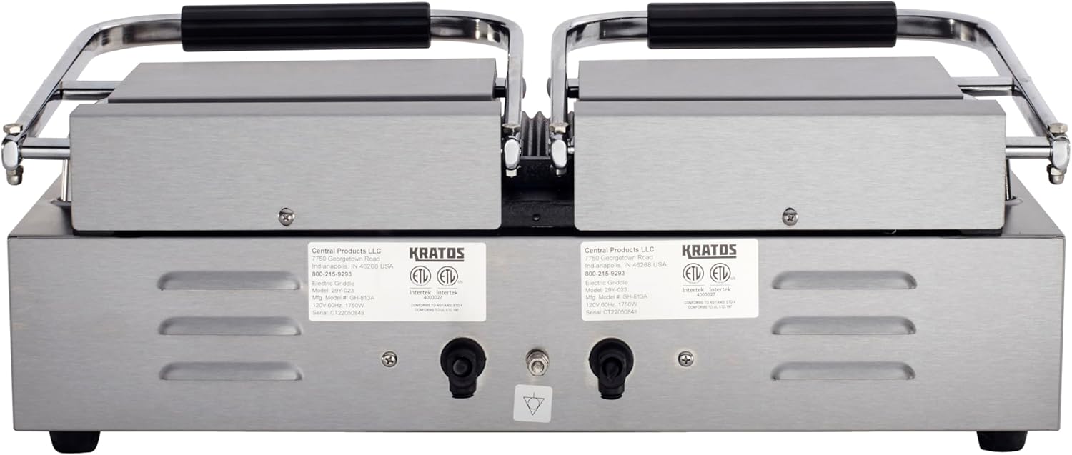 Kratos Commercial Electric Panini Sandwich Grill with Grooved Plates, 18.7" x 9" Cooking Surface, Commercial Countertop Panini Press, 120V, 3500W (29Y-023)