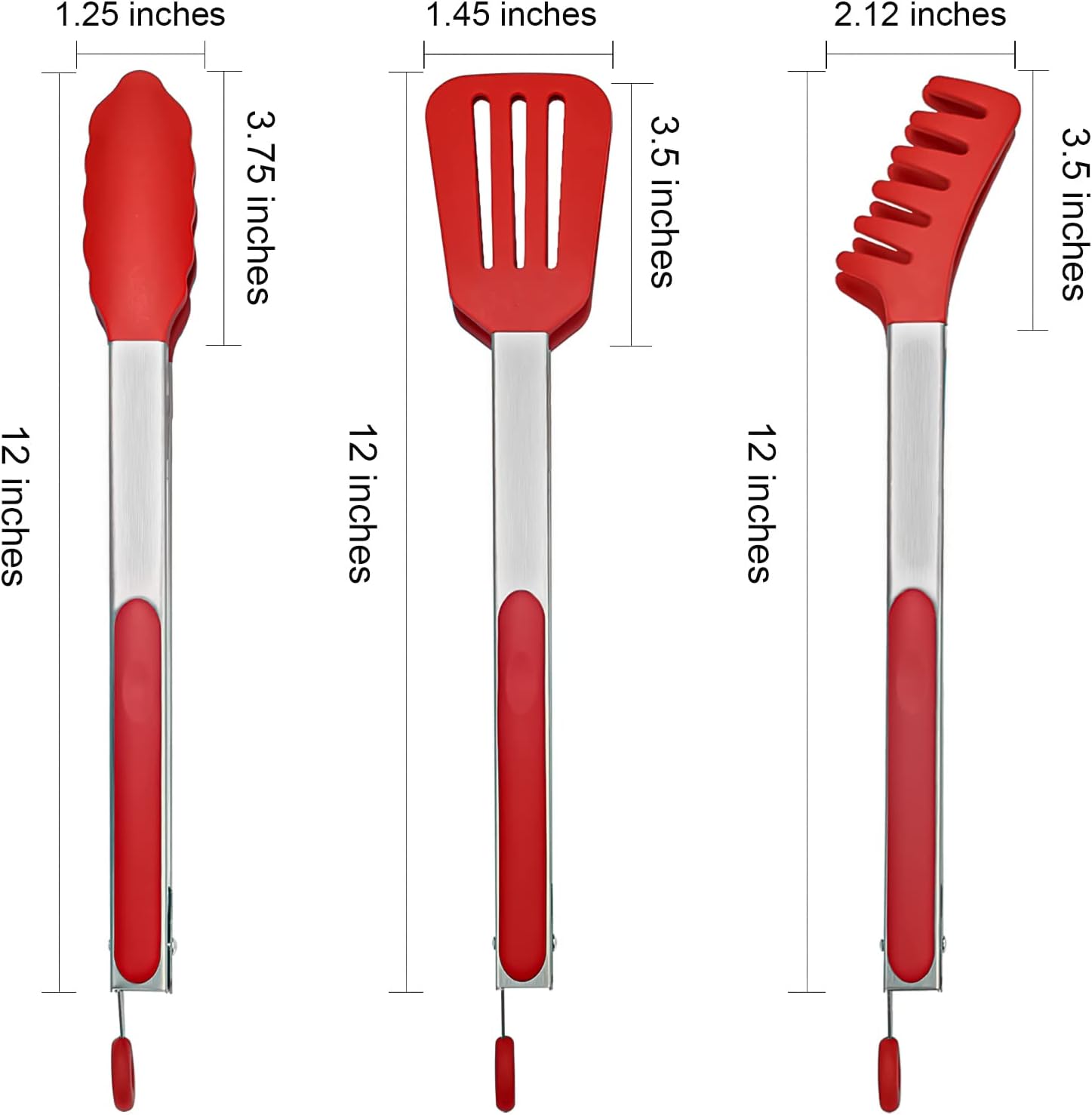 - 3-PEICE SET MEET YOURS NEED: 12 Inches Classical Food Tong, 12 Inches Spatula Tong, 12 Inches Pasta Tong.