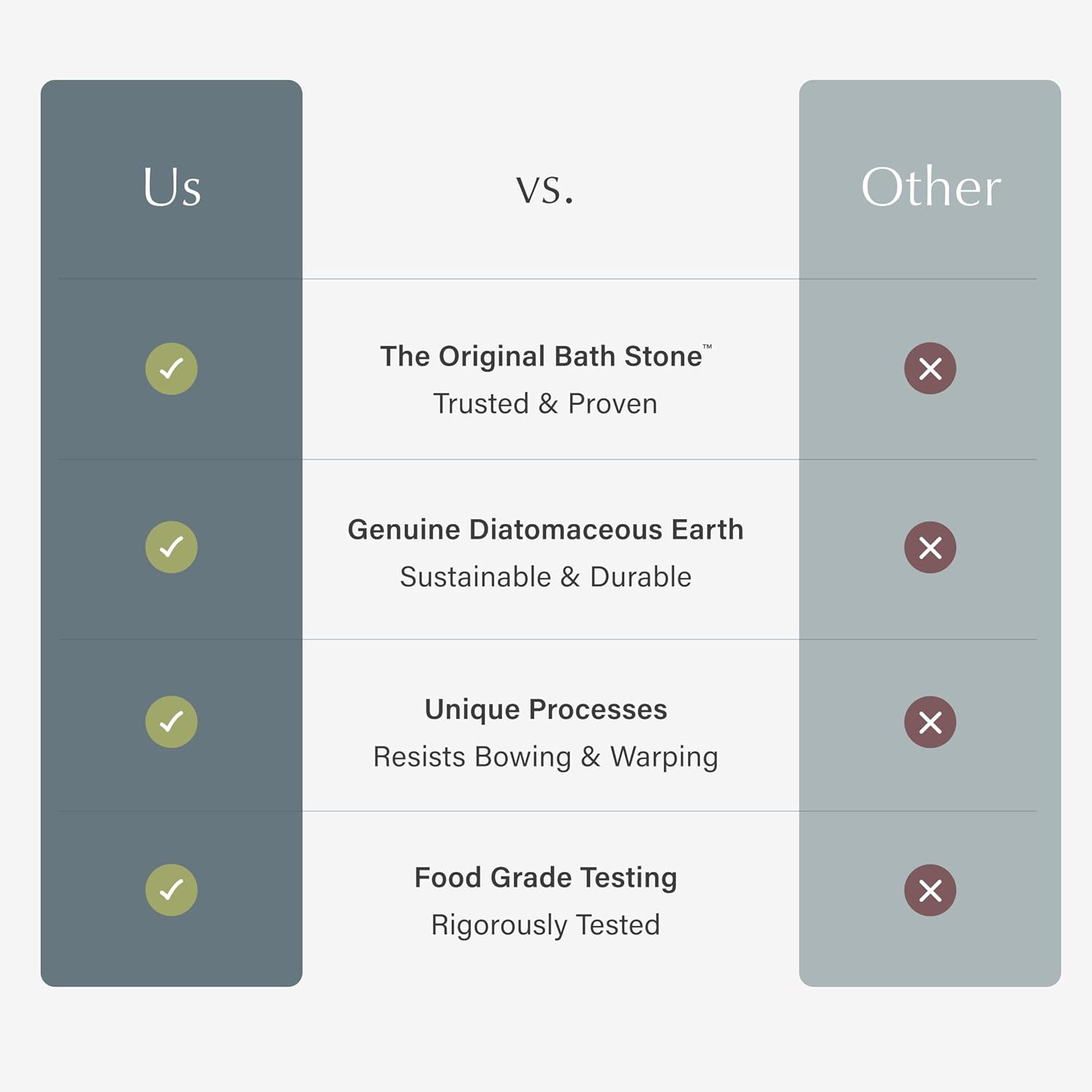 - THE ORIGINAL BATH STONE MAT - Say goodbye to old, soggy bath mats and transform your bathroom with the Dorai Bath Stone Mat. Crafted from diatomaceous earth and recycled paper, our bath mat dries instantly, eliminating moisture buildup and odors.