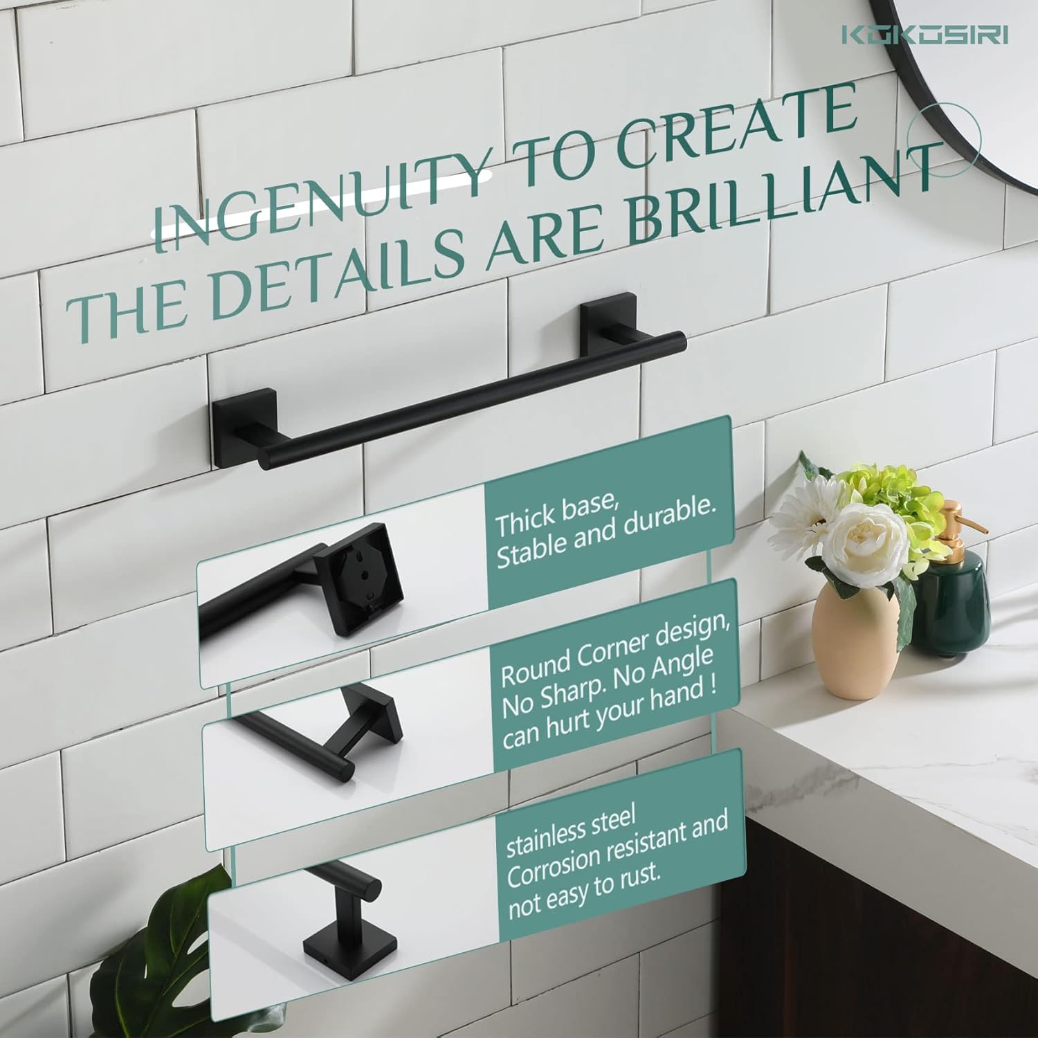 KOKOSIRI Bathroom Towel Bars 16 Inch Towel Rail Matte Black 40CM Hand Towel Holder for Bath Kitchen Wall Stainless Steel B4005BK-L16