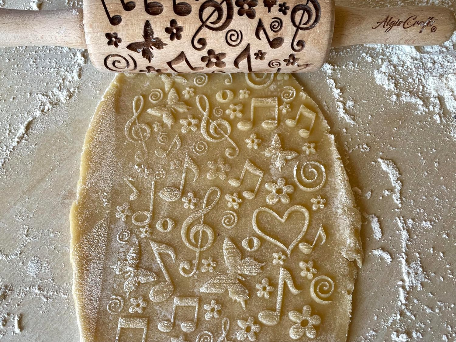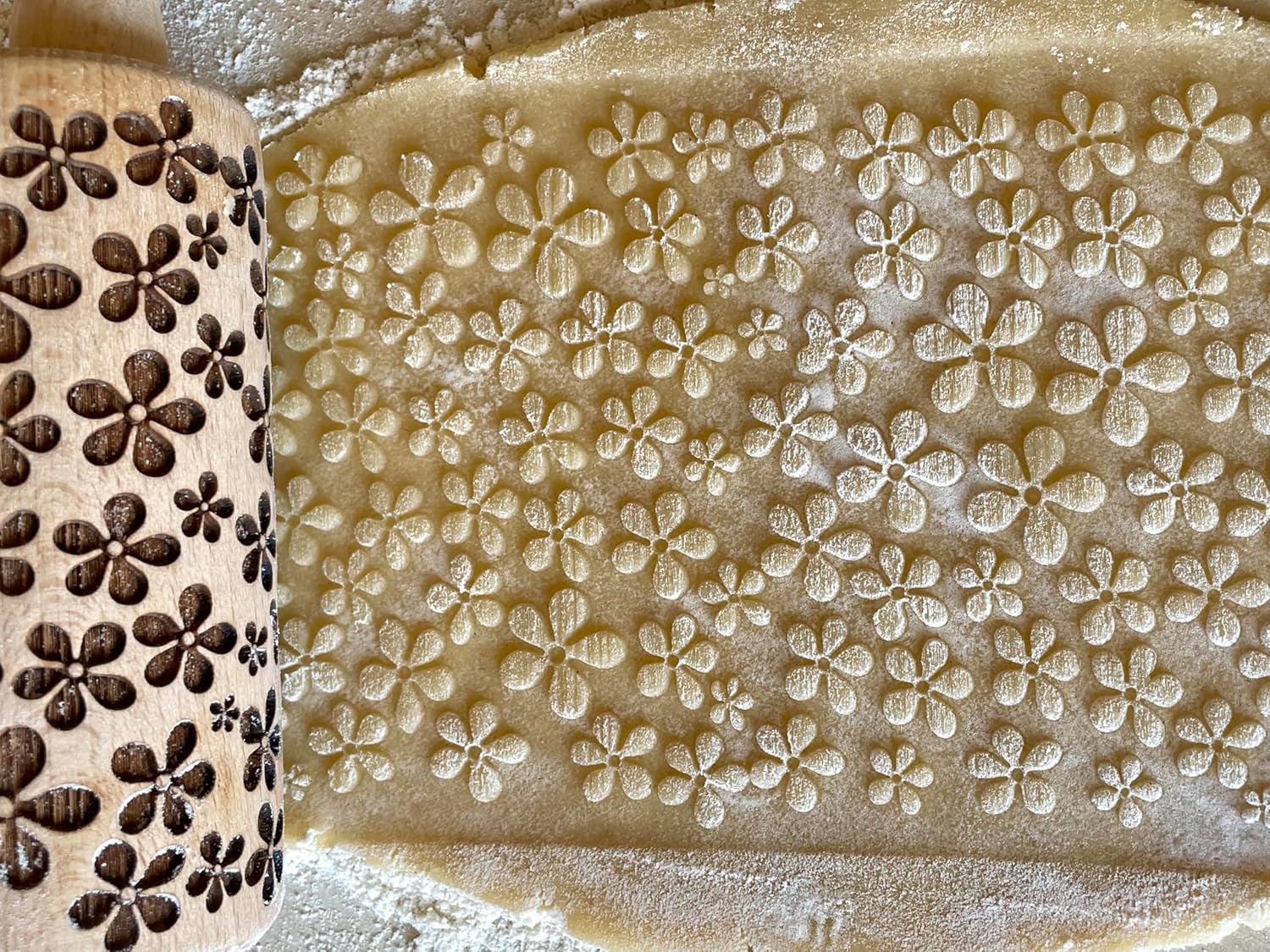 - COMFORTABLE DESIGN - This rolling pin with pattern is made with ergonomics in mind so that anyone can use its mesmerising designs! Rolling pin measures are approximately 9.5" (24 cm) from handle to handle, embossing part 4,5 inches (11 cm), diameter 2" (5 cm), made of beech wood. The finished product is food safe.