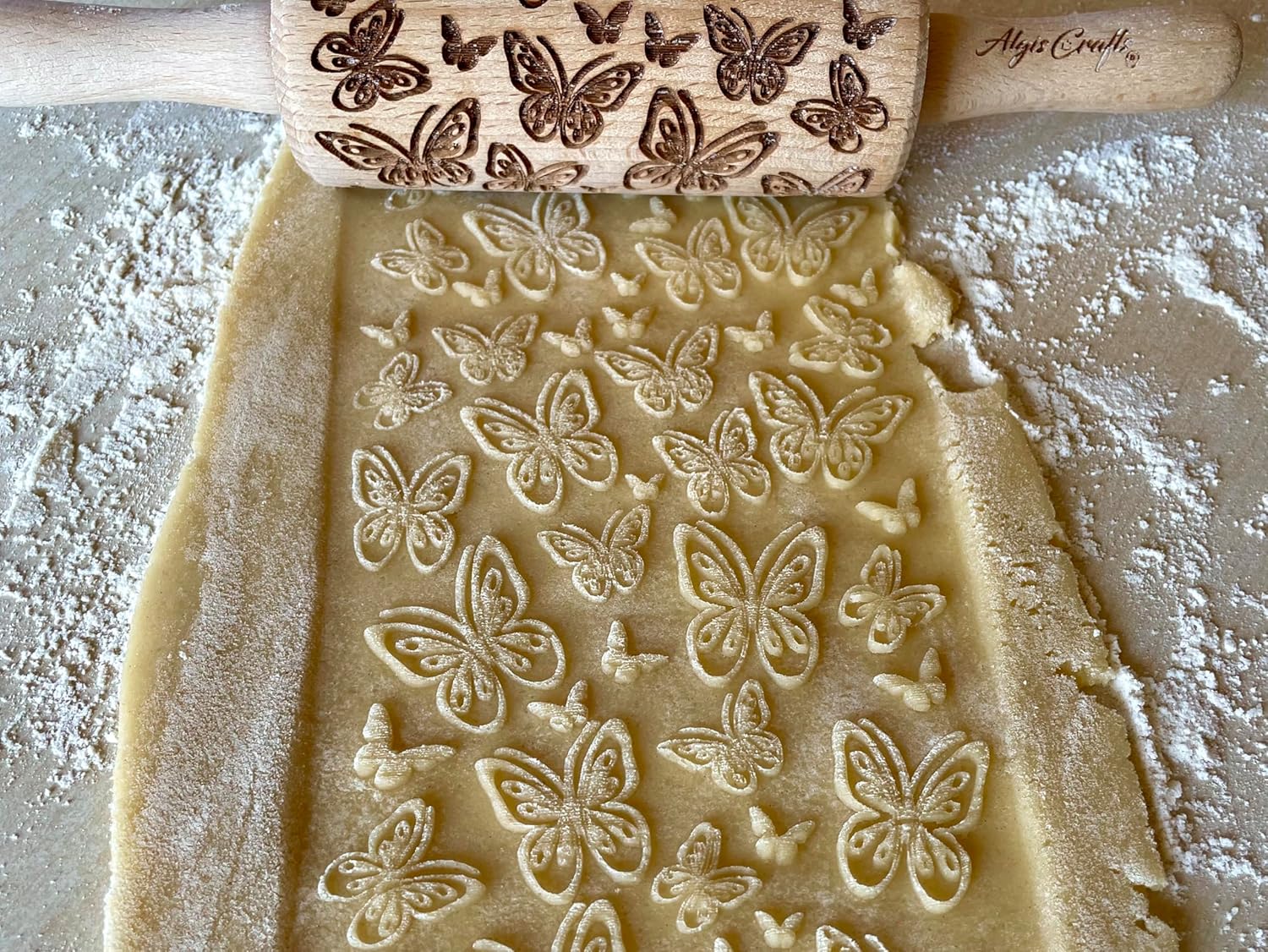 SUMMER 3 KID Rolling Pin SET. Wooden Laser Cut Mini Rolling Pins for cookies, play dough, salt dough or clay Butterfly, Music Flower by Algis Crafts