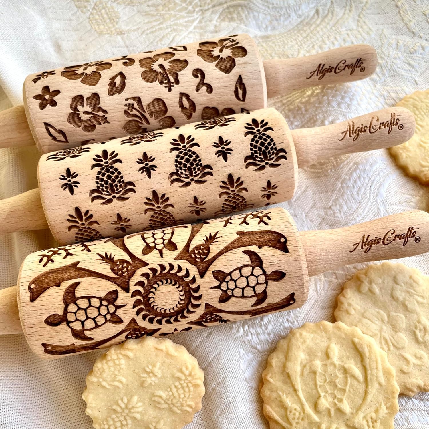 HAWAII 3 KID Rolling Pin SET. Wooden Laser Cut Mini Rolling Pins for cookies, play dough, salt dough by Algis Crafts