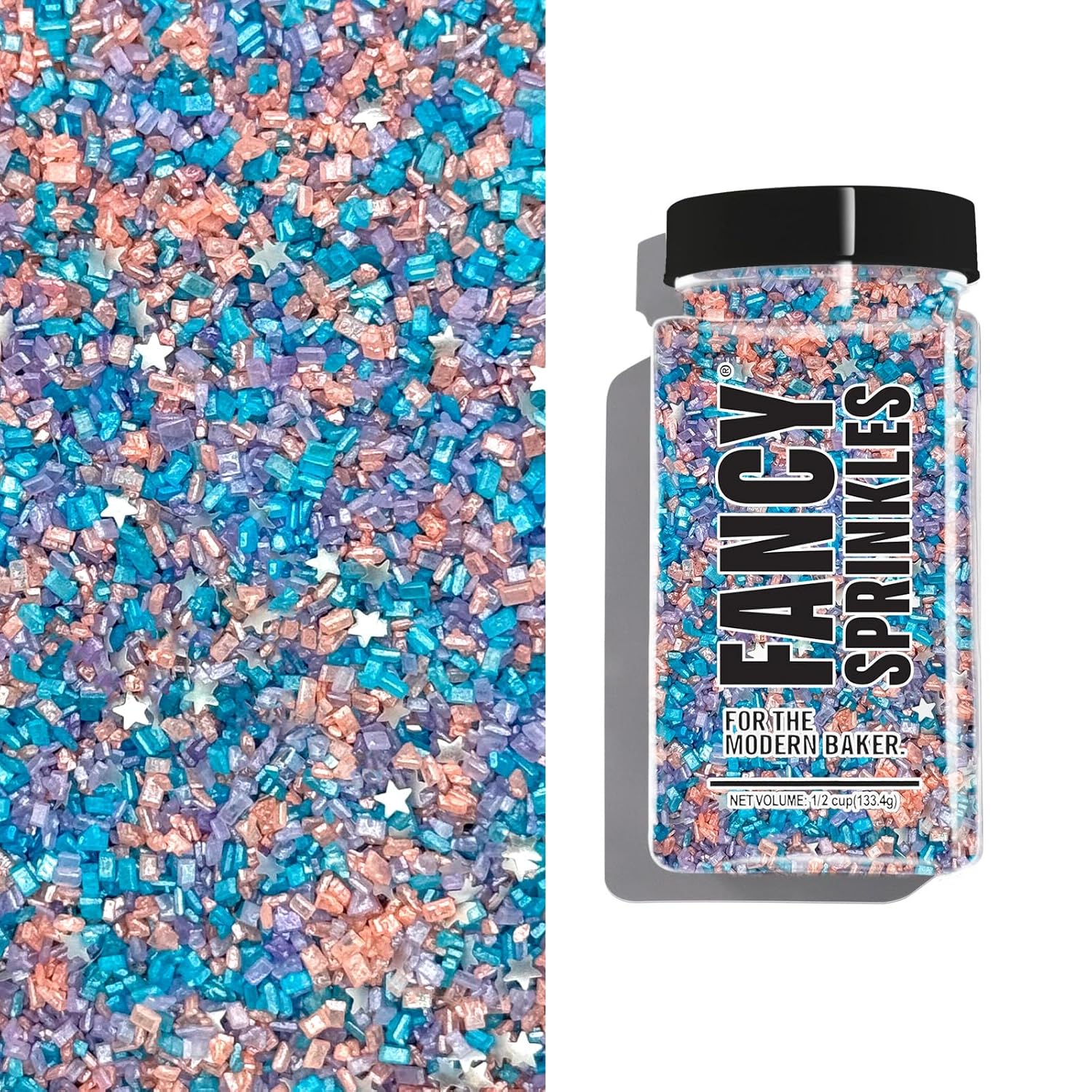 - FANCY SPRINKLES ORIGINAL: A real gem. Opal Rain Fancy Sugar is a precious blend of pearlescent peach, lavender, and pale blue sugar crystals flecked silver mini edible glitter stars. It’s a mood ring in a bottle!