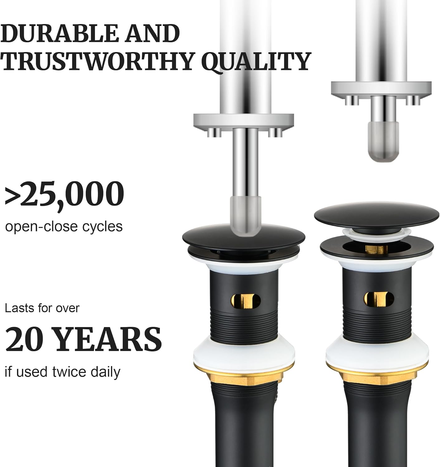 - SIZE AND QUALITY: It fits Standard 1 3/4" Drain Opening and can also fits drains holes diameter varying from 1 1/2" to 1 7/8 inch ( 1.55 to1.87 inches ) . Which is made of high quality brass and great 304 stainless steel with professional and exquisite craft, which make it quality and durable
