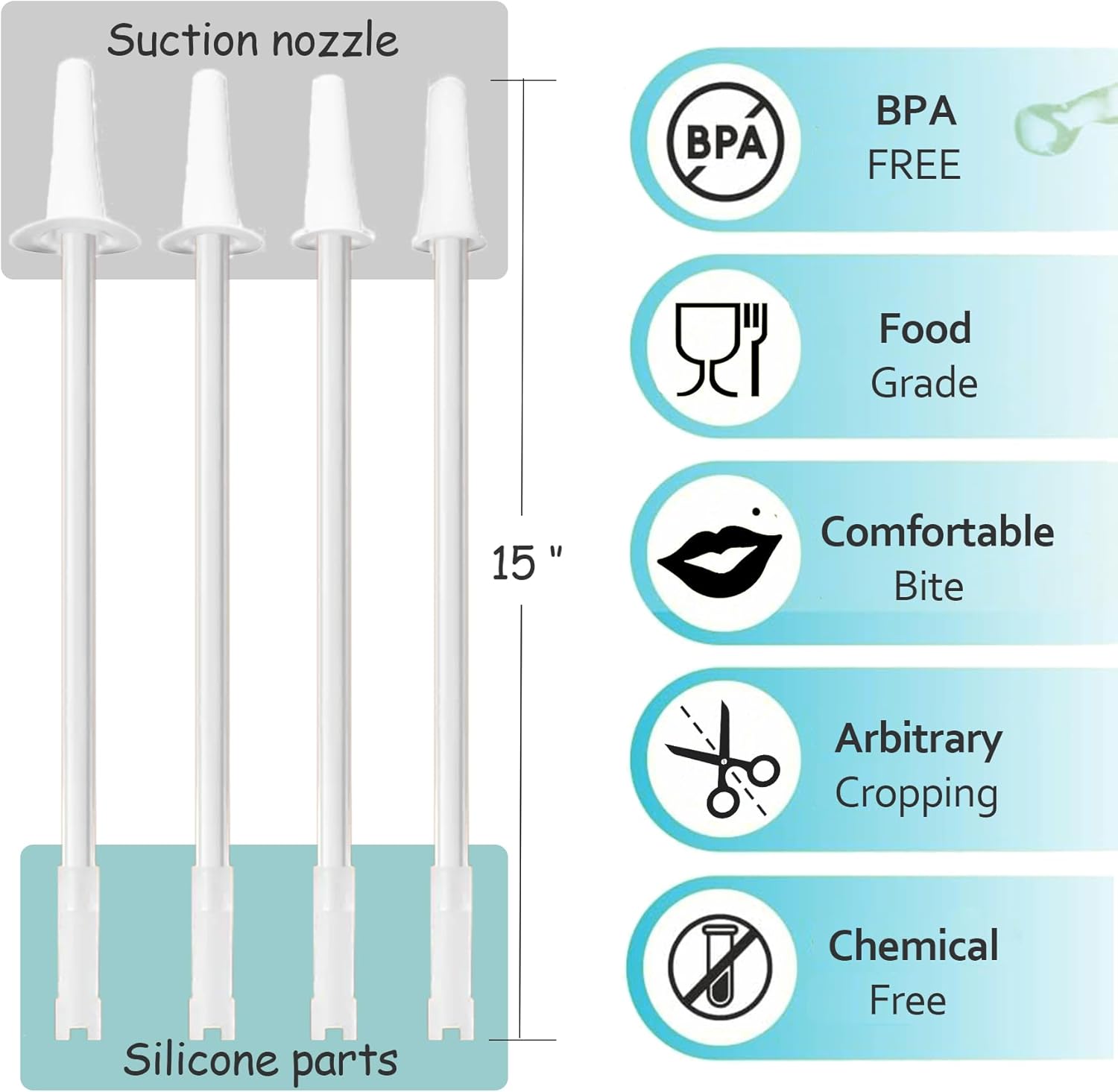 - CHECKLIST - 4 Nozzles/4 Straws/4 Elastic Silicone/2 Straw Brushes.