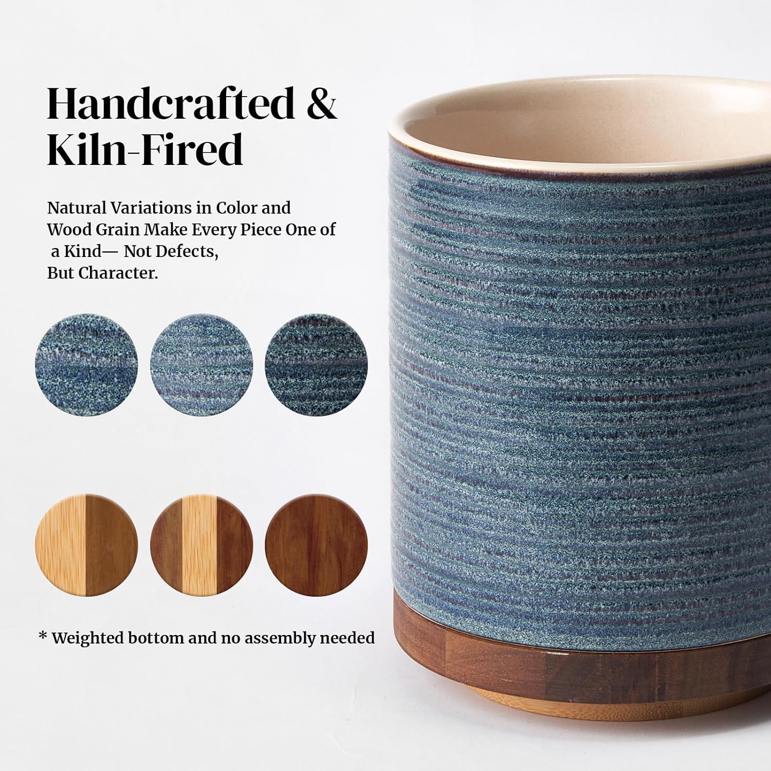 - Stable & Fall-Prevention Design: This utensil stand features a weighted bottom crafted from durable, non-detachable wood, ensuring exceptional stability and tipping prevention. Designed to keep your cooking tools upright and secure, this reliable utensil vessel is perfect for the busiest kitchen moments. Its elegant yet sturdy construction makes it an essential utensil caddy, offering a seamless blend of style and functionality while keeping your tools always within easy reach.