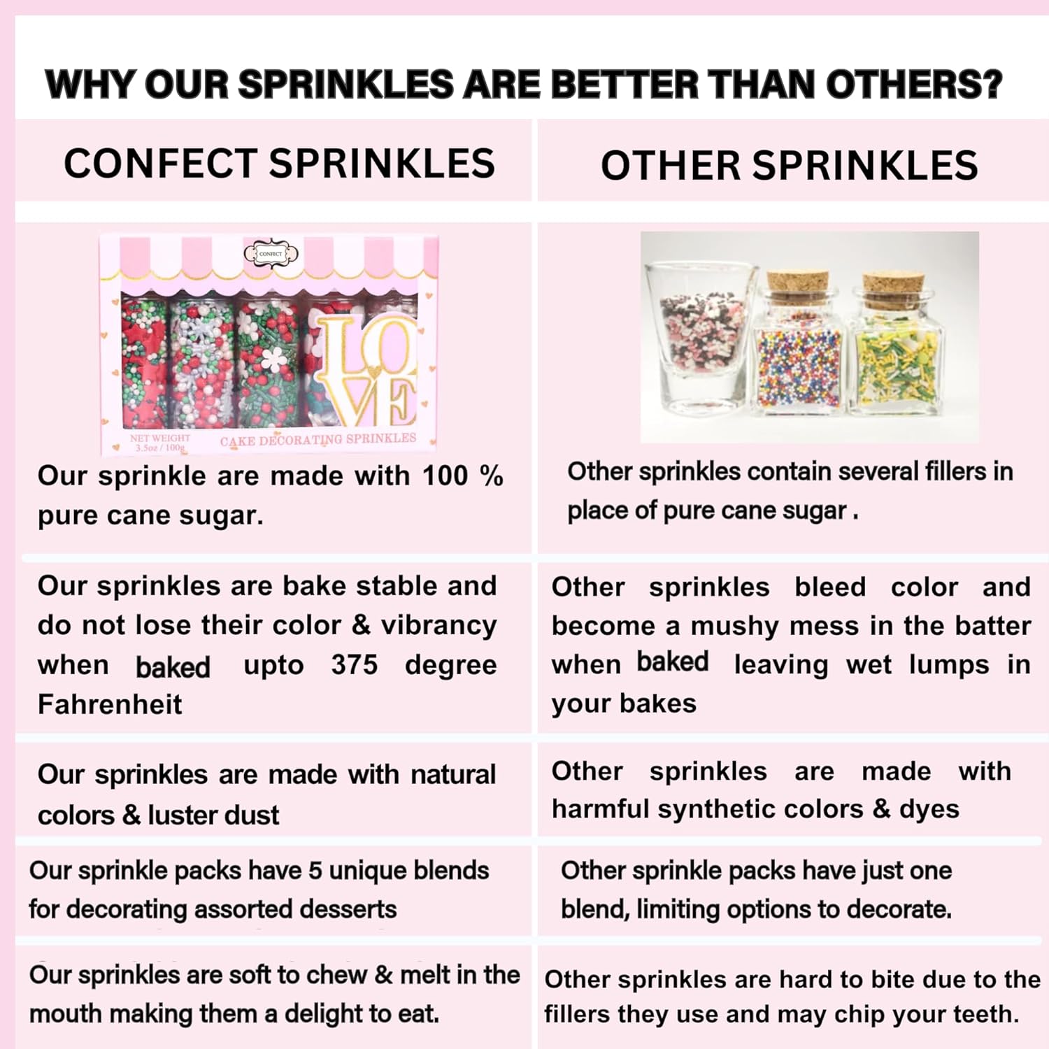 - Sprinkles are Perfect for all Celebrations - Birthdays, Anniversary, Graduation, Weddings & more Our Sprinkles are made with Pure Cane sugar only & contain no fillers All our Sprinkles are Handmade & Handcrafted
