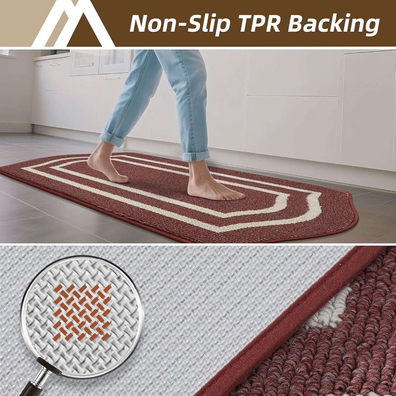 COSY HOMEER Long Kitchen Floor Mats for in Front of Sink Super Absorbent Kitchen Rugs and Mats 24"x59" Non-Skid Kitchen Mat Standing Mat Washable,Polypropylene,Red,Frame