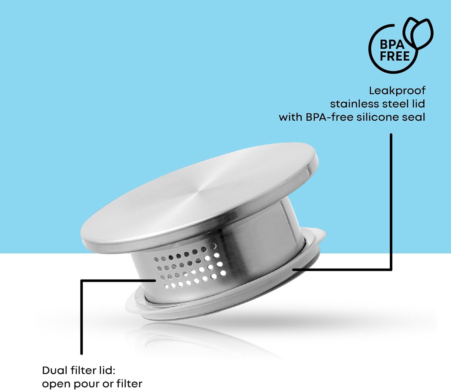 - The Pour & Filter Jug! JoyJolt Breeze Pitchers with Lids feature 2 openings. A wide pour spout and filter spout! So kids can use it as a fast pouring pitcher, while you can have a cocktail pitcher or sangria pitcher that keeps the fruit and ice in the beverage pitcher – not dropped into your glass.