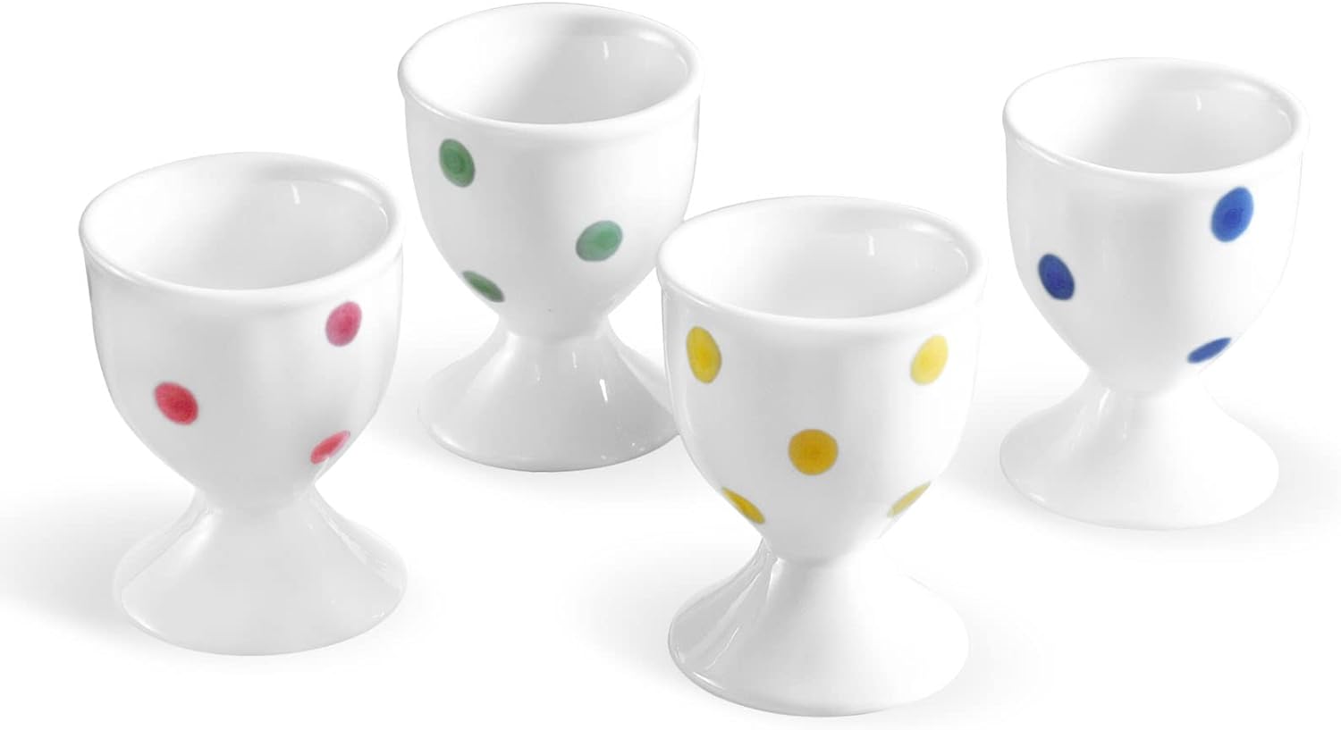 Cinf Ceramic Polka Dots Egg Cup Gift Set of 4 Porcelain Holder Breakfast Boiled Cooking Tools Stable Easy to Clean Childhood Memories Table Decoration Kitchen
