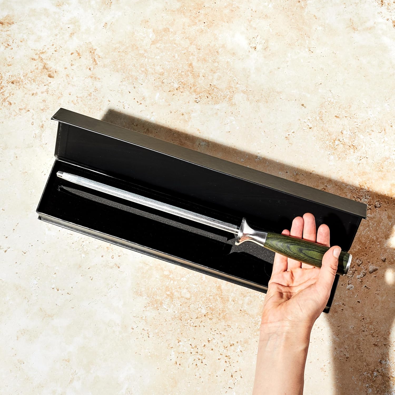 HexClad Honing Rod, 9 -Inch Japanese Damascus Stainless Steel Rod, Pakkawood Handle