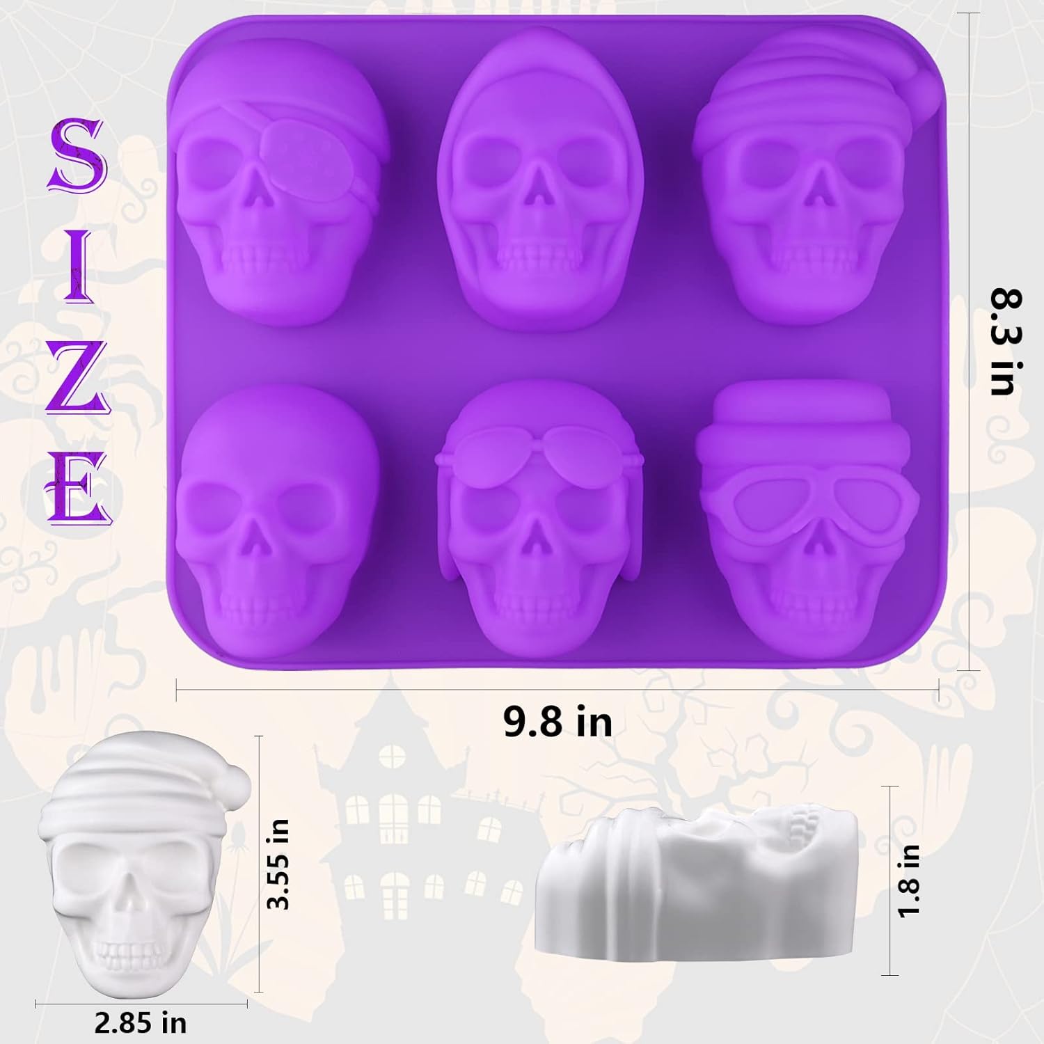 - MORE SKULL STYLES: 6 halloween-themed silicone molds of different styles, include wizard, christmas, pirate, pilot, magician, primal skull. Perfect for halloween party. bake a cake with fabulous flavor and fun shape.