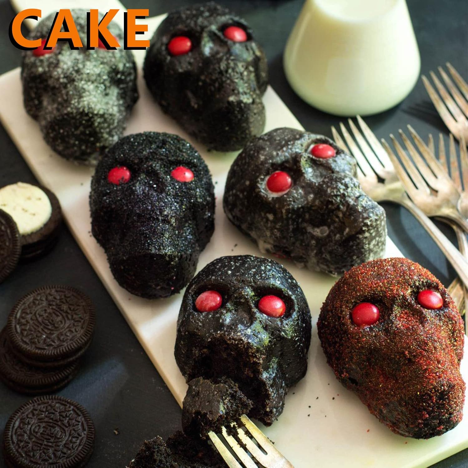 Sakolla Large Skull Cake Pan Silicone Mold, 2 Pack 6 Cavity Halloween Skull Cakelet Chocolate Molds Candy Pizza Baking Molds Handmade Soap Tray