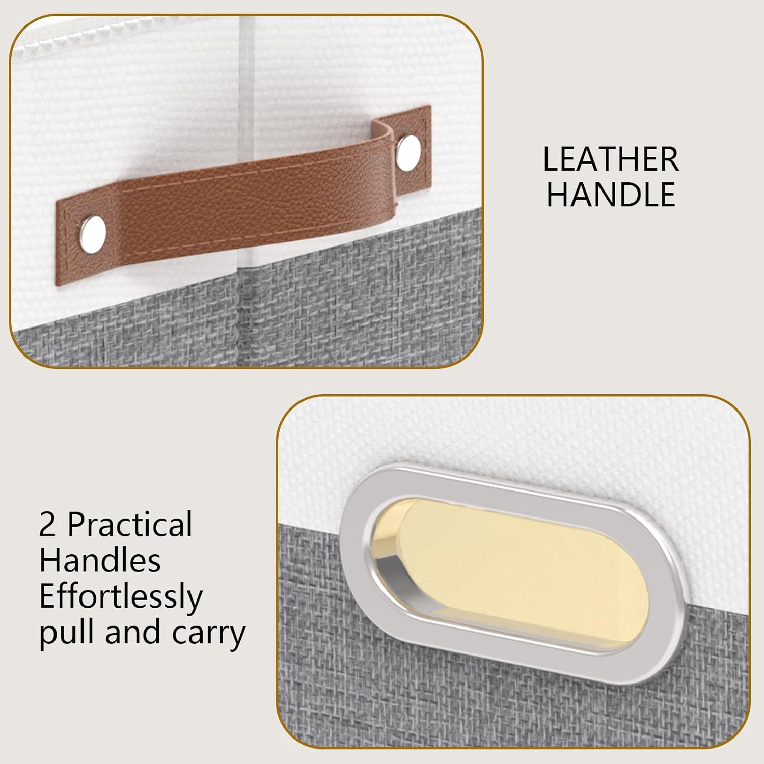 Yawinhe Foldable Storage Baskets for Shelves, Fabric Closet Organizers, Bins with 3 Handles, Cubes for Clothes, White/Grey, 15''Lx9.8''Wx8.3''H, 4-Pack