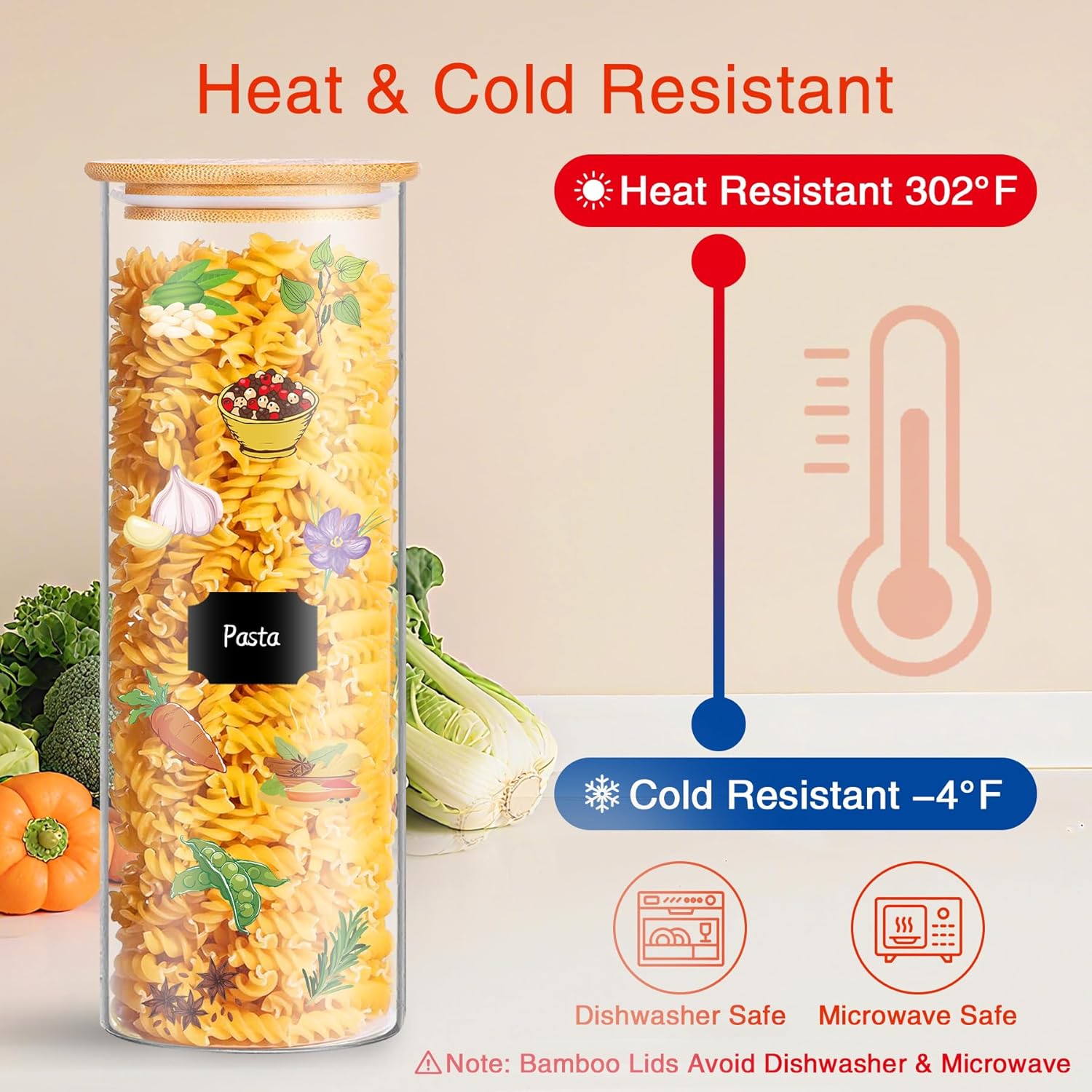- 【Ultra-Durable】Built with borosilicate glass, the glass pantry storage containers set with airtight bamboo lids withstand -4°F to 302°F without cracking. Designed for daily use, these durable glass flour sugar pasta storage containers retain integrity through all temperature changes.