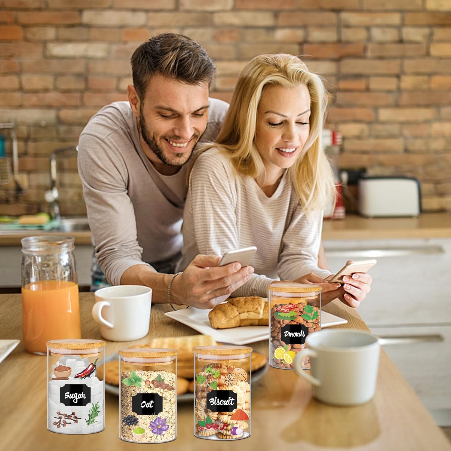 - 【Airtight &Moistureproof 】These food storage jars utilize precision bamboo lid with silicone rings to create an airtight seal. The moisture-proof glass storage jars with bamboo lids effectively block ants while preserving freshness in kitchen food jars & canisters.