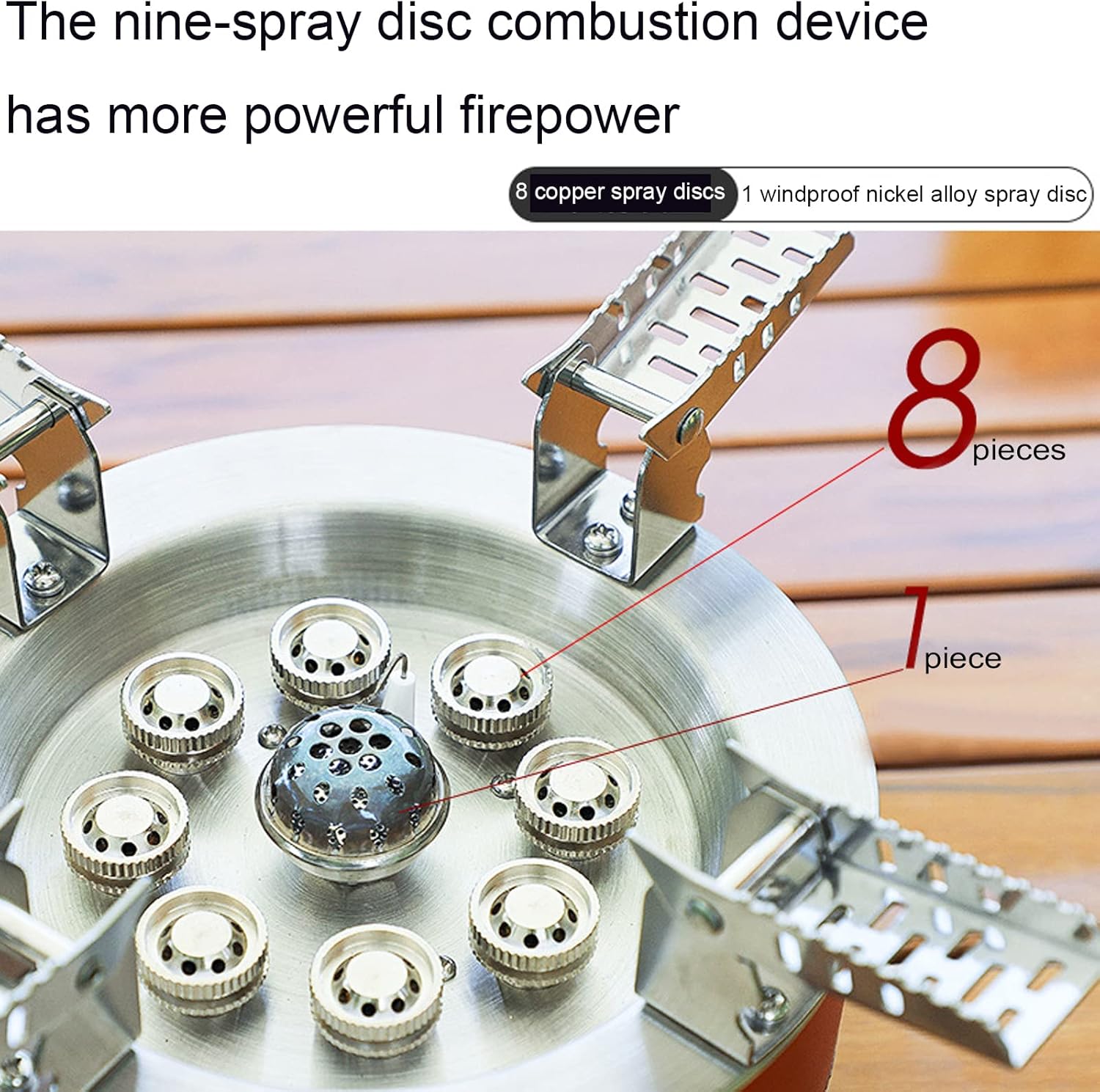 - [New Upgrade Copper Furnace Core] — The backpacking stove is made of high-quality stainless steel and copper, stands high temperature and weight, anti-corrosion, strong oxidation resistance. The center of the camp stoves made of copper material, which will not burn the furnace core to create a break. The collapsible bracket is anti-skid and high strength, bearing capacity almost 75KG.