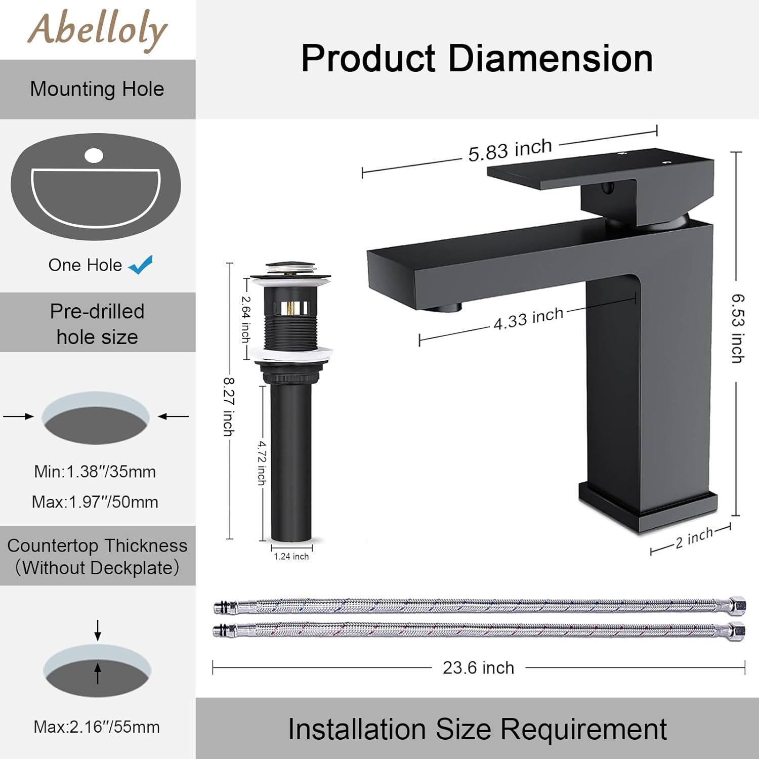 - 【Solid Brass Material】Abelloly High-end solid brass construction body of black bathroom faucet is corrosion and scratch resistant. Compared to stainless steel faucets, brass faucets have a longer lifespan and better glossiness. Simple and high-grade design, suitable for various styles of bathroom.