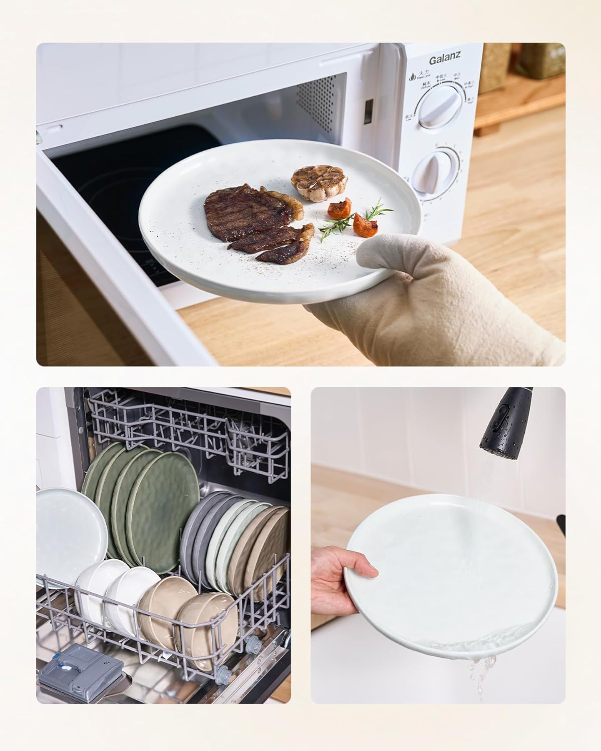 - 【Scratch Resistant】Dinnerware is fired at 2340℉ for 13.5 hours to form a strong scratch resistant surface. No need to worry about scratches from your forks or knives.