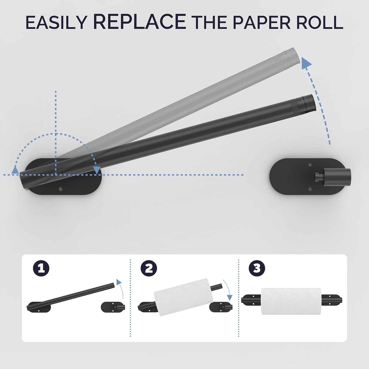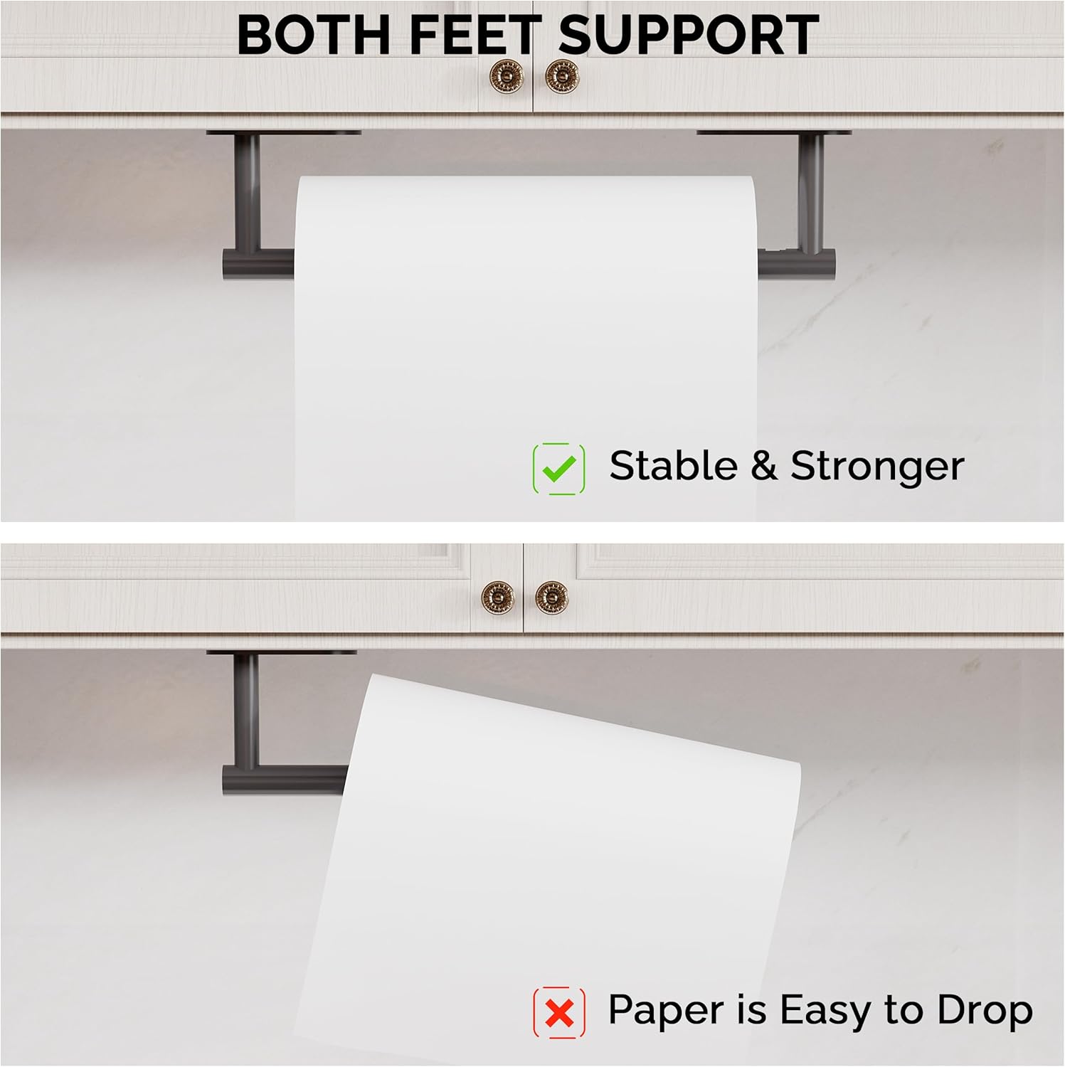 - 【DESIGN】:The double-post pivoting design makes it simple to replace the paper towels. The revolving buckle successfully keeps the kitchen towel from coming off, and the symmetrical design adds aesthetic value to your kitchen.