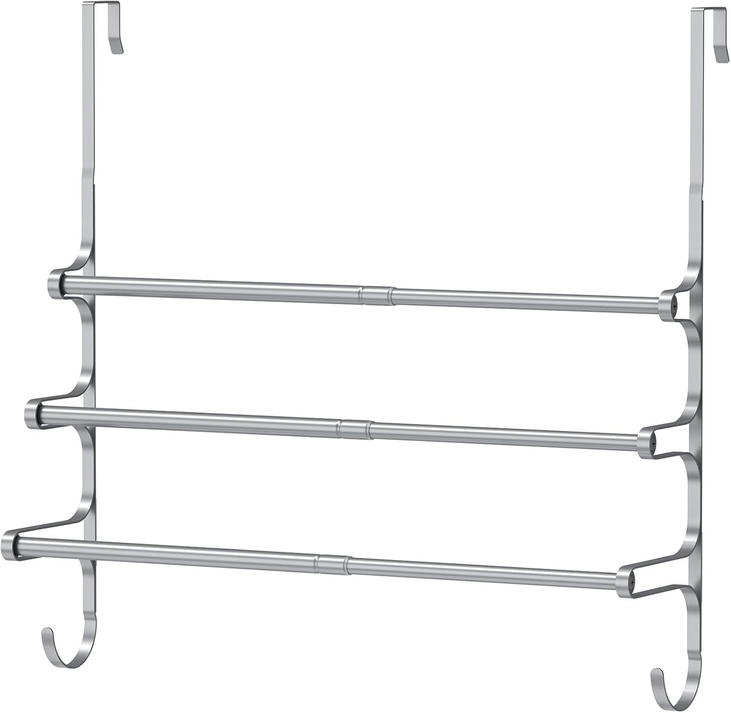 Over The Door Towel Rack, Triple Towel Storage Holder with Hooks, 24.02 Inches Towel Bar Hanger Towel Racks for Bathroom (Silver)