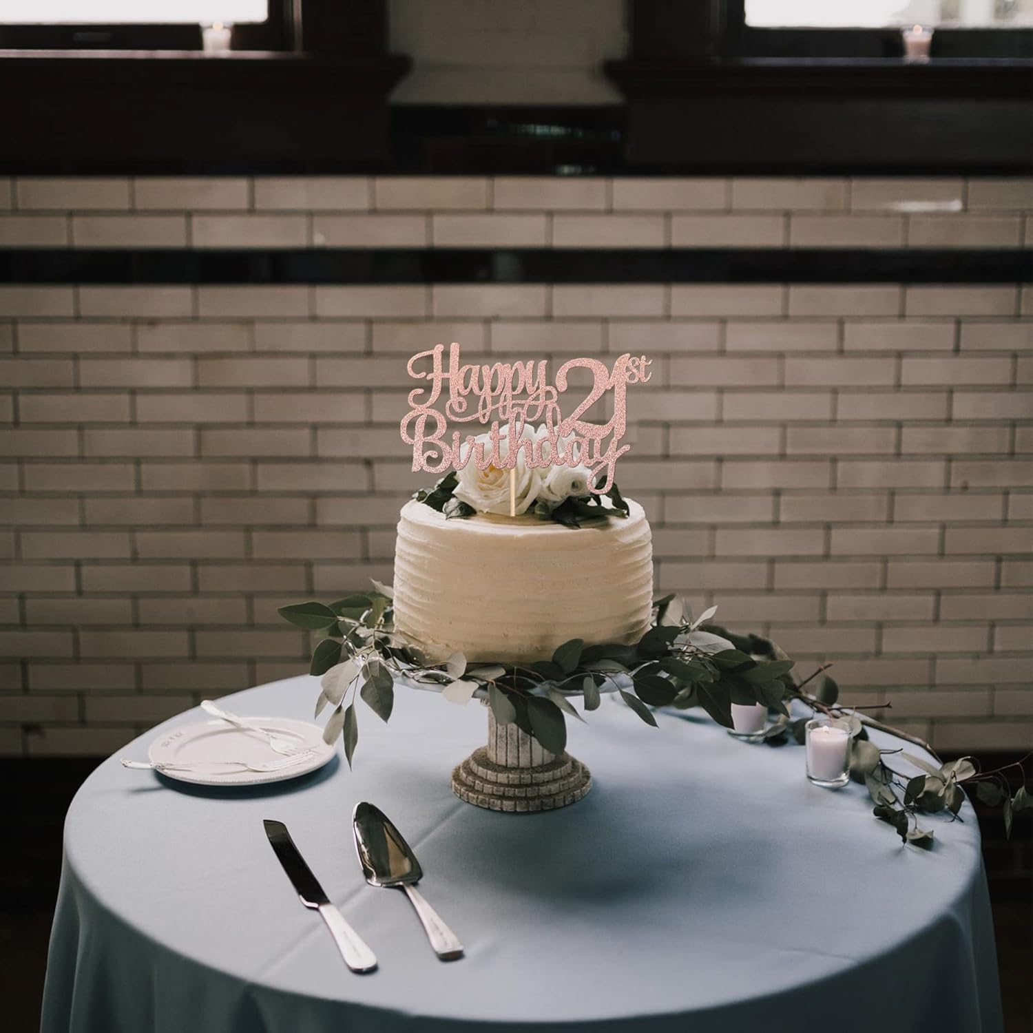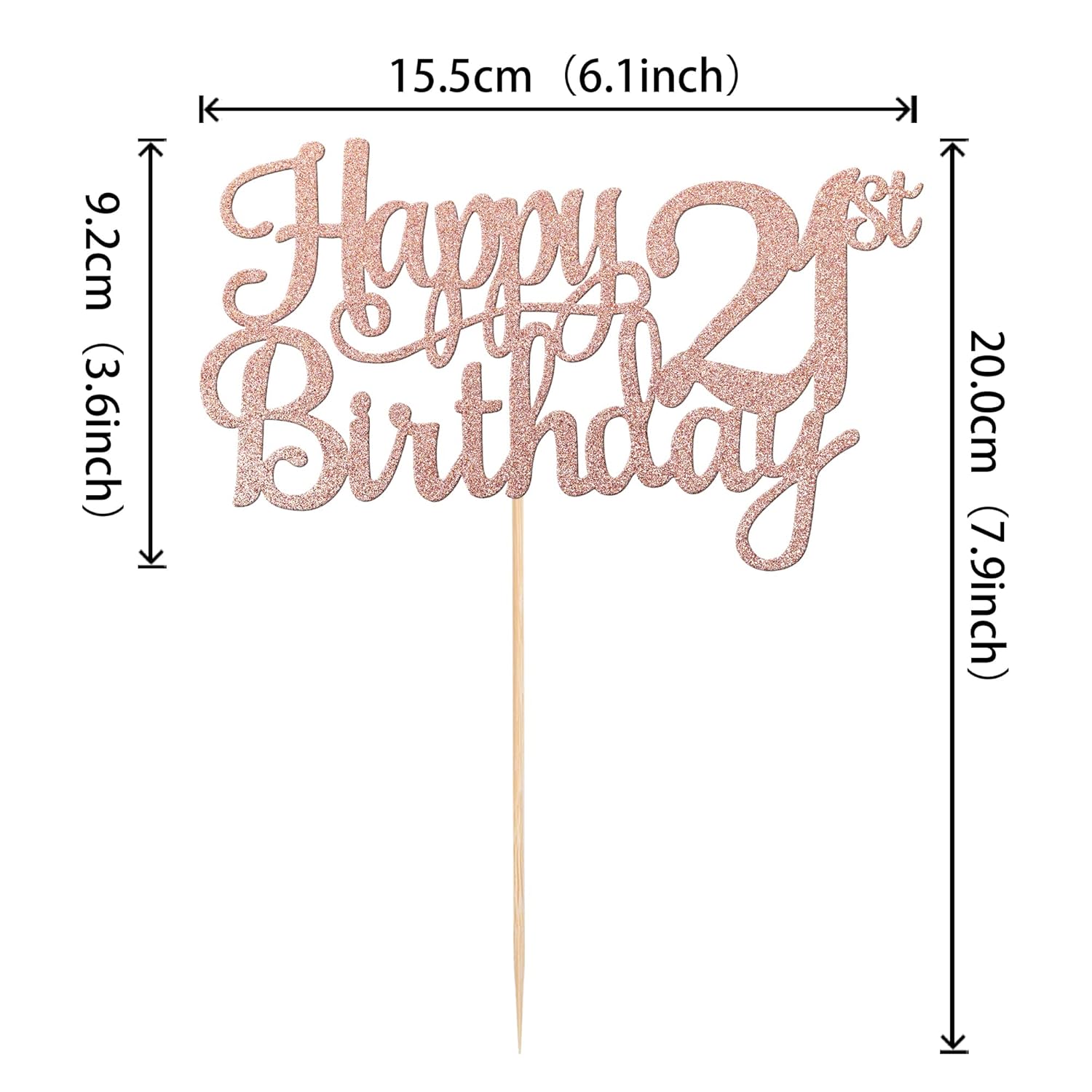 1 PCS Happy 21st Birthday Cake Topper - Glitter Cheers to 21 Years - Fabulous Cake Decoration for 21st Birthday Theme Party - Rose Gold