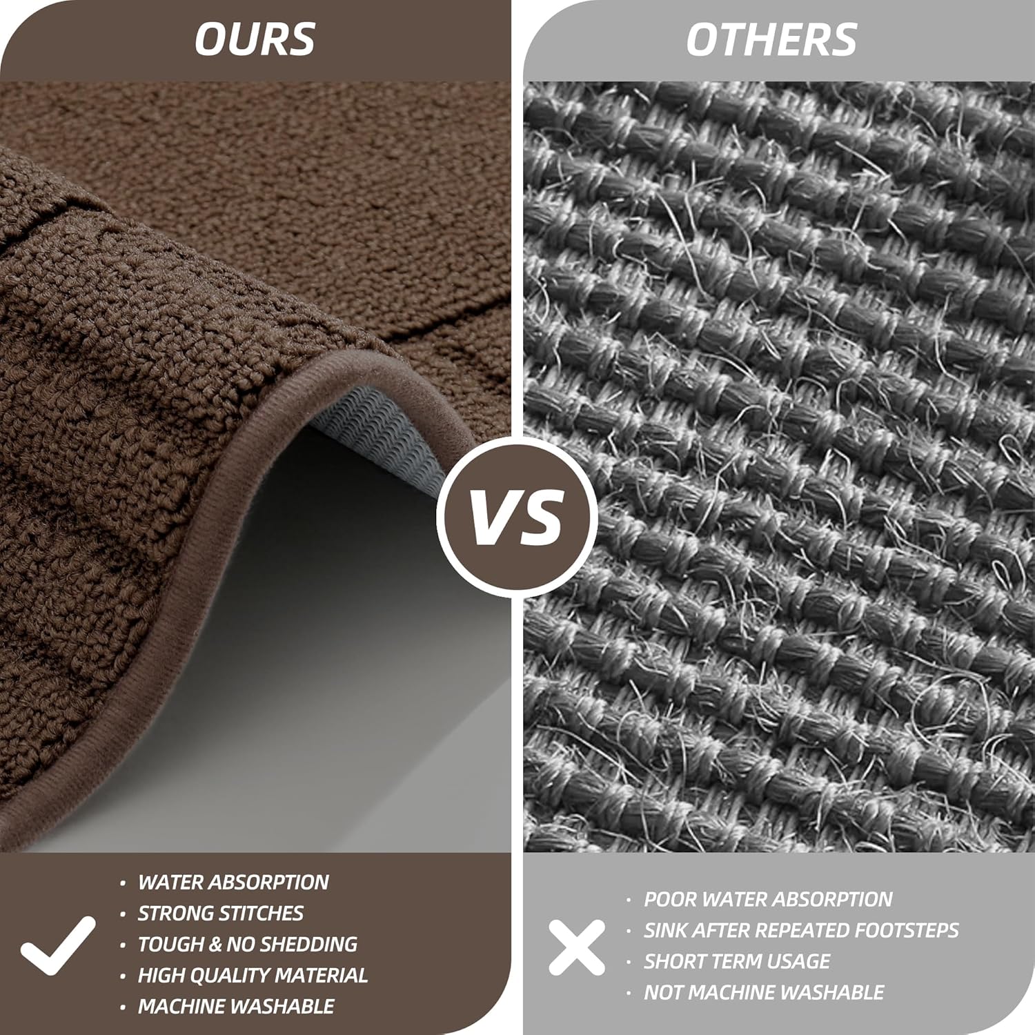 BEQHAUSE Kitchen-Rugs-Washable-Kitchen-Mats-for-Floor Non-Slip Kitchen Mats Set of 2 Absorbent Kitchen Runner Brown with TPR Backing 20x30inch/20x48inch