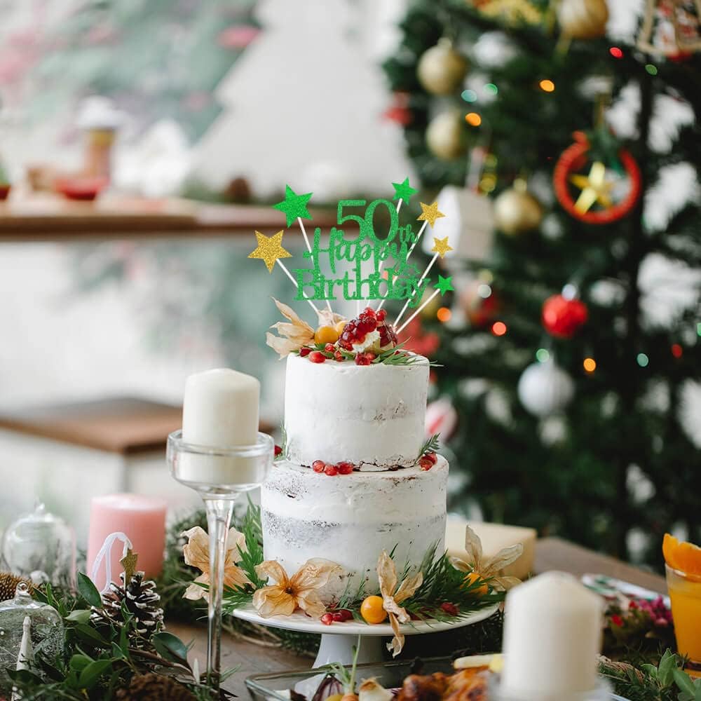 Glittery 50th Happy Birthday Cake Topper with Star,Personalised 50 Birthday Cake Toppers Party Decorations Party Supplies for Boys Girls Green Gold