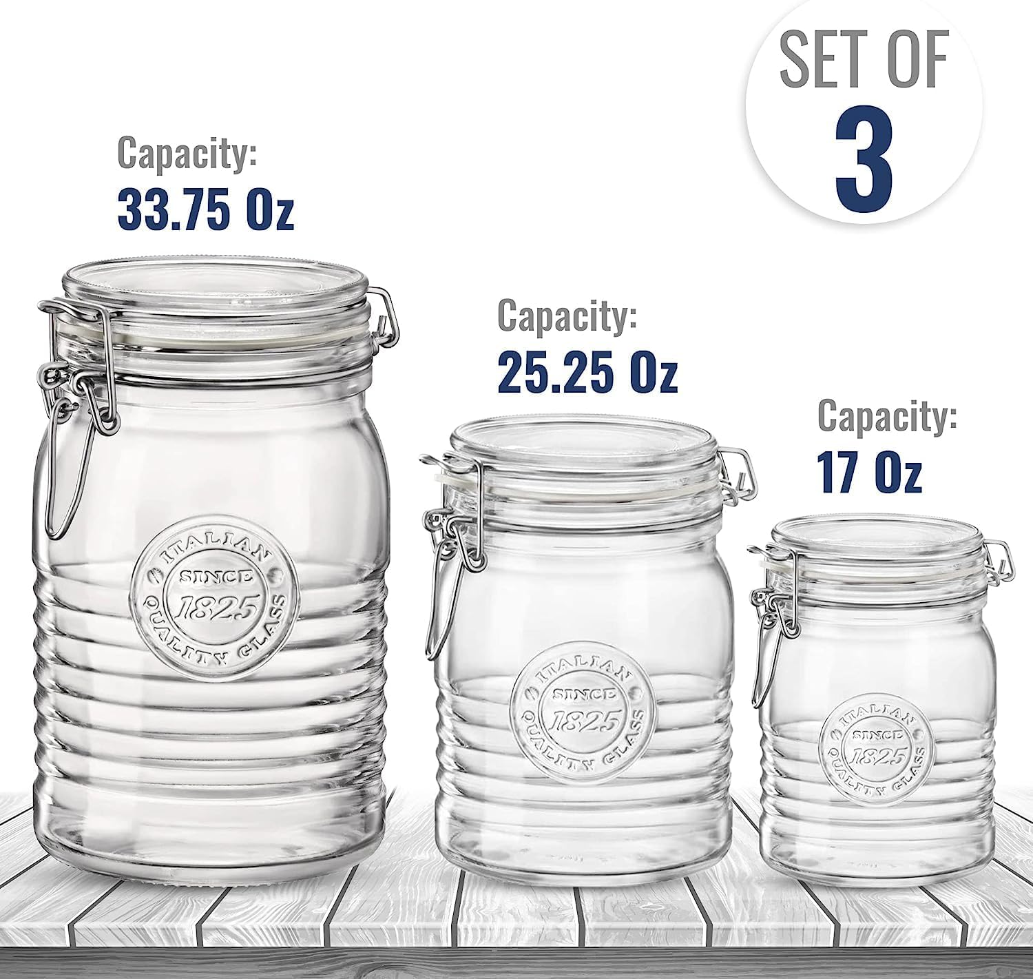- Versatile Storage Options: With three sizes—33.75 oz, 25.25 oz, and 17 oz—these jars provide flexibility for organizing a variety of dry ingredients and creating a cohesive pantry display.