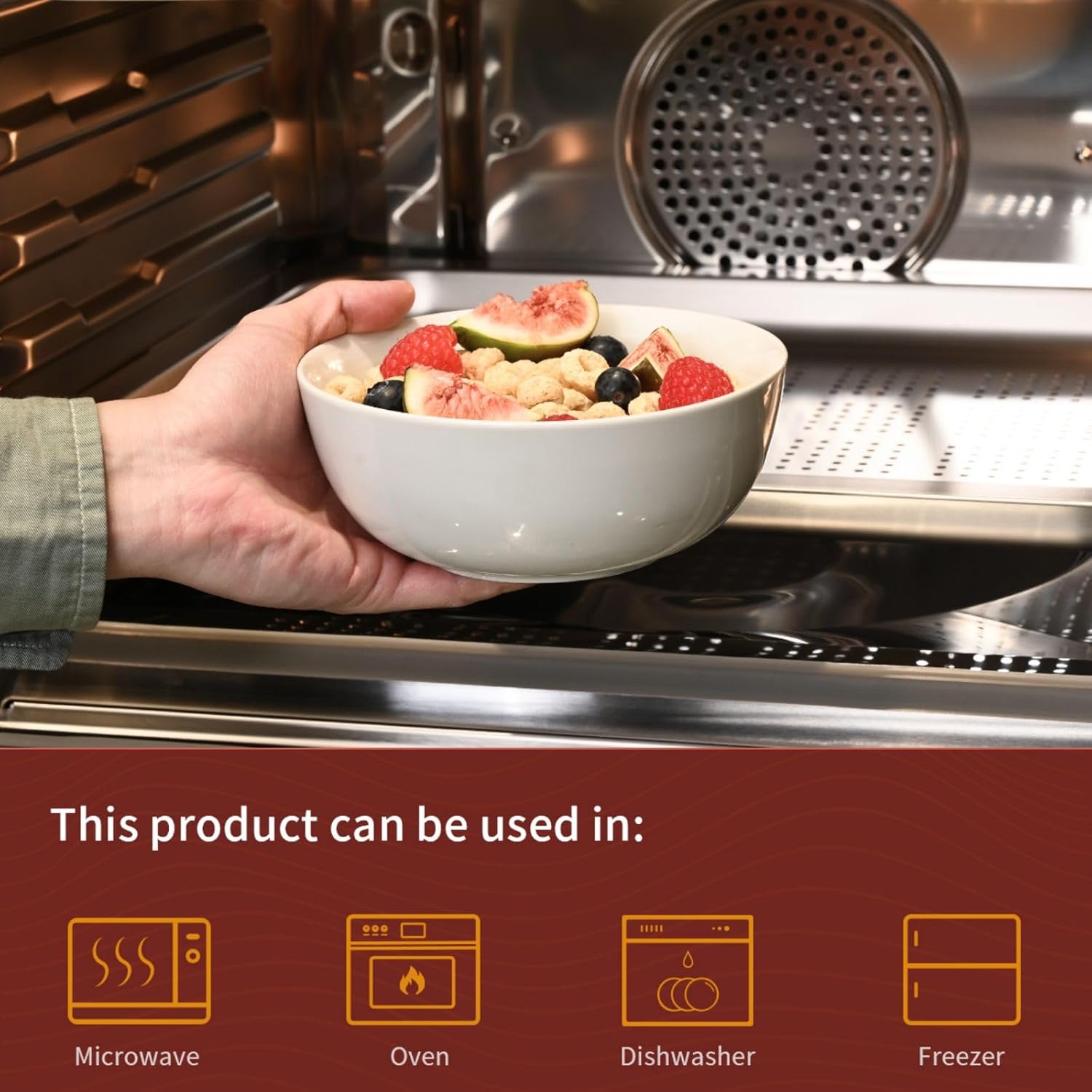 - Versatile Usage: With a generous capacity of 20.3 oz / 600 ml ( Dimension: Φ 6 × L 2.4 inch / Φ 15.3 × L 6 cm, Weight: 0.81 lbs / 0.36 kg per piece), WishDeco white cereal bowl is perfect for enjoying your favorite cereals, soups, desserts, pasta, noodles, salads, and fruits. The ideal size is designed to accommodate a variety of dishes