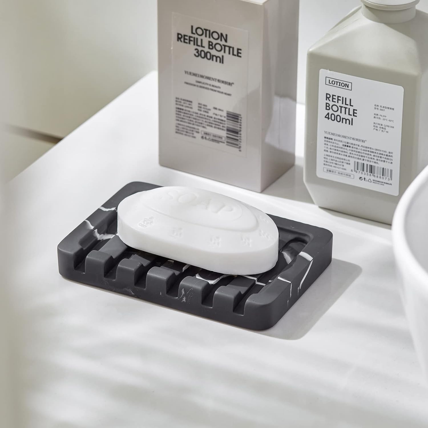 - Marble Pattern Soap Dish: The shower soap holder is black with white streak through it to create a cute marble like finish. Add a nice clean touch to your bathroom and kitchen, and complements your décor so well.