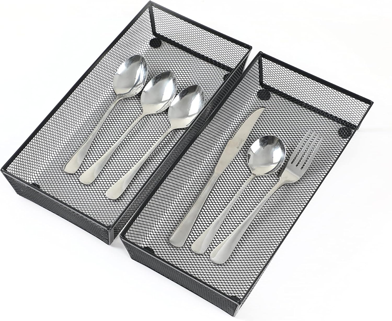 - Reliable Material: The Silverware organizers are made of quality steel mesh, not easy to deform or break. The thickened coating can keep it from cracking and peeling. Easy to clean and no upkeep is required.