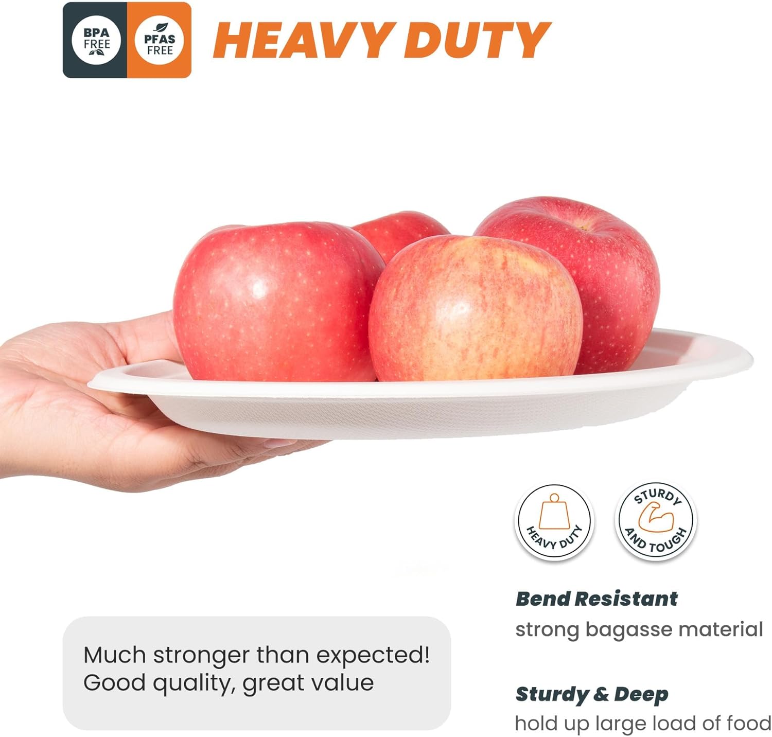 - ECO-FRIENDLY AND HEALTHY PLATES: Our BPI-certified 100% compostable paper plates are made from biodegradable bagasse. Pure and natural dinner plates provide you more safety guarantee. And these recyclable disposable plates can de decompose to nature in just 90 days.