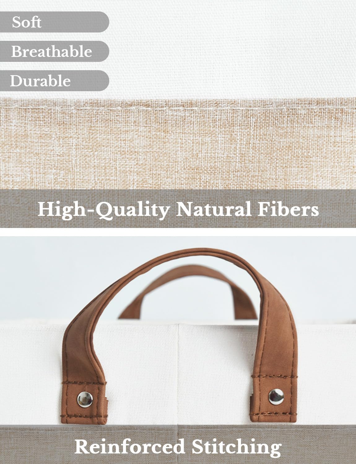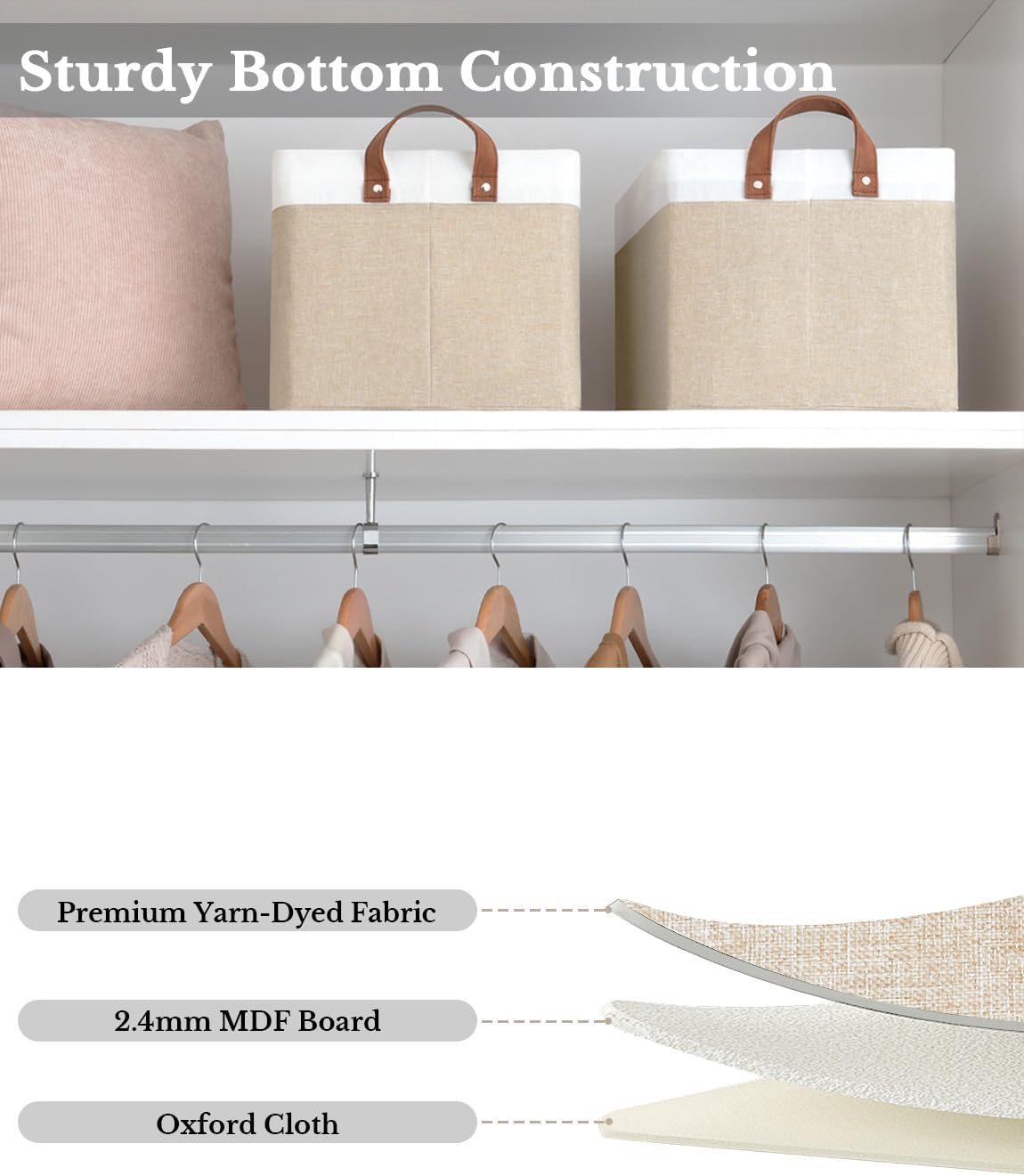 StorageWorks Storage Bins, Fabric Storage Bins for Shelves, Large Storage Baskets with Metal Frame, Closet Baskets and Bins with Handles, Brown and White, 2-Pack