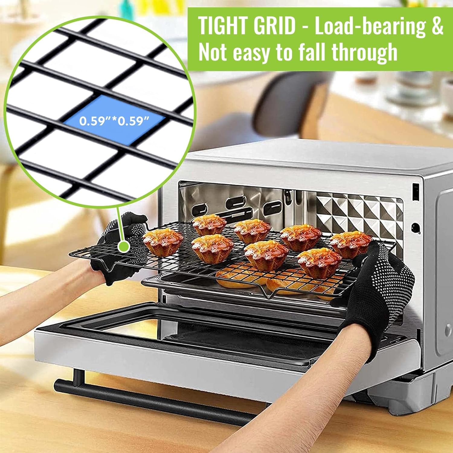- Better Cooling: With 0.65" support feet and wire grid design allow for better air circulation, so that your food can be evenly heated or cooled faster during each cooking, cooling and roasting. Tight square mesh make food not easy to fall through.