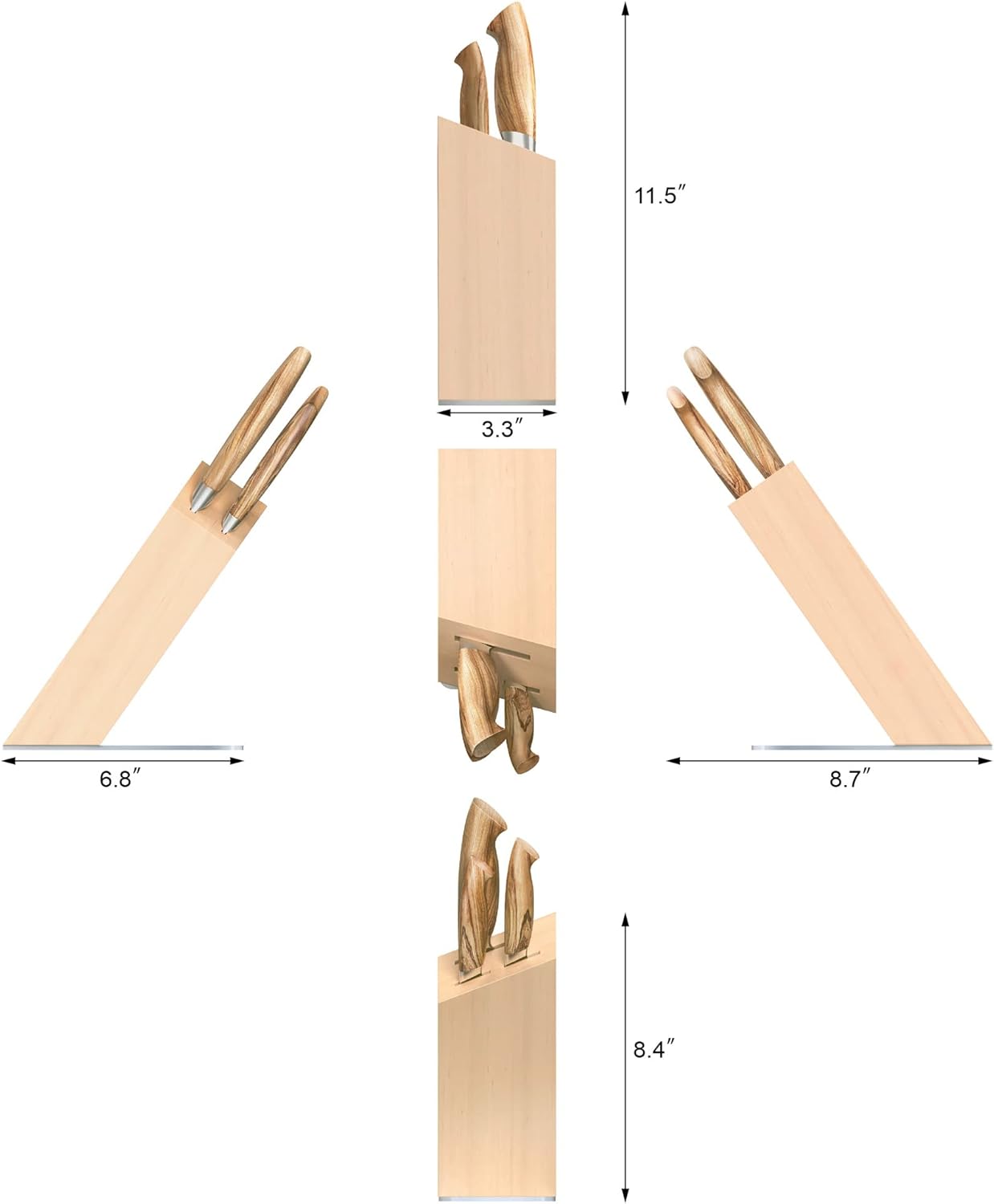 - 4-Piece Set Includes: 8" Chef's Knife, 5" Serrated Utility Knife, 3.5" Paring Knife, American Walnut HUA Knife Block.