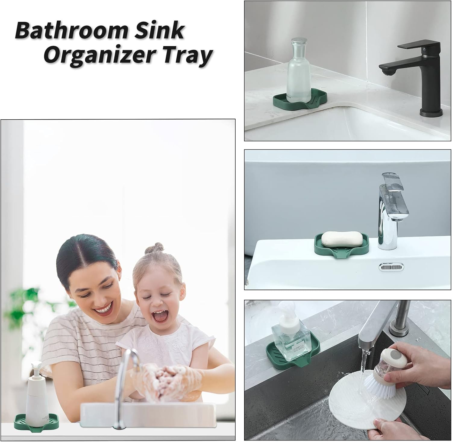 Silicone Bathroom Soap Dishes with Drain Spout-Bathroom and Kitchen Sink Organizer,Sponge Holder,Dish Soap Tray,Perfect for Dispenser,Scrubber,Bottle,Cup on Sink or Counter-Green 4.9"×3.2"