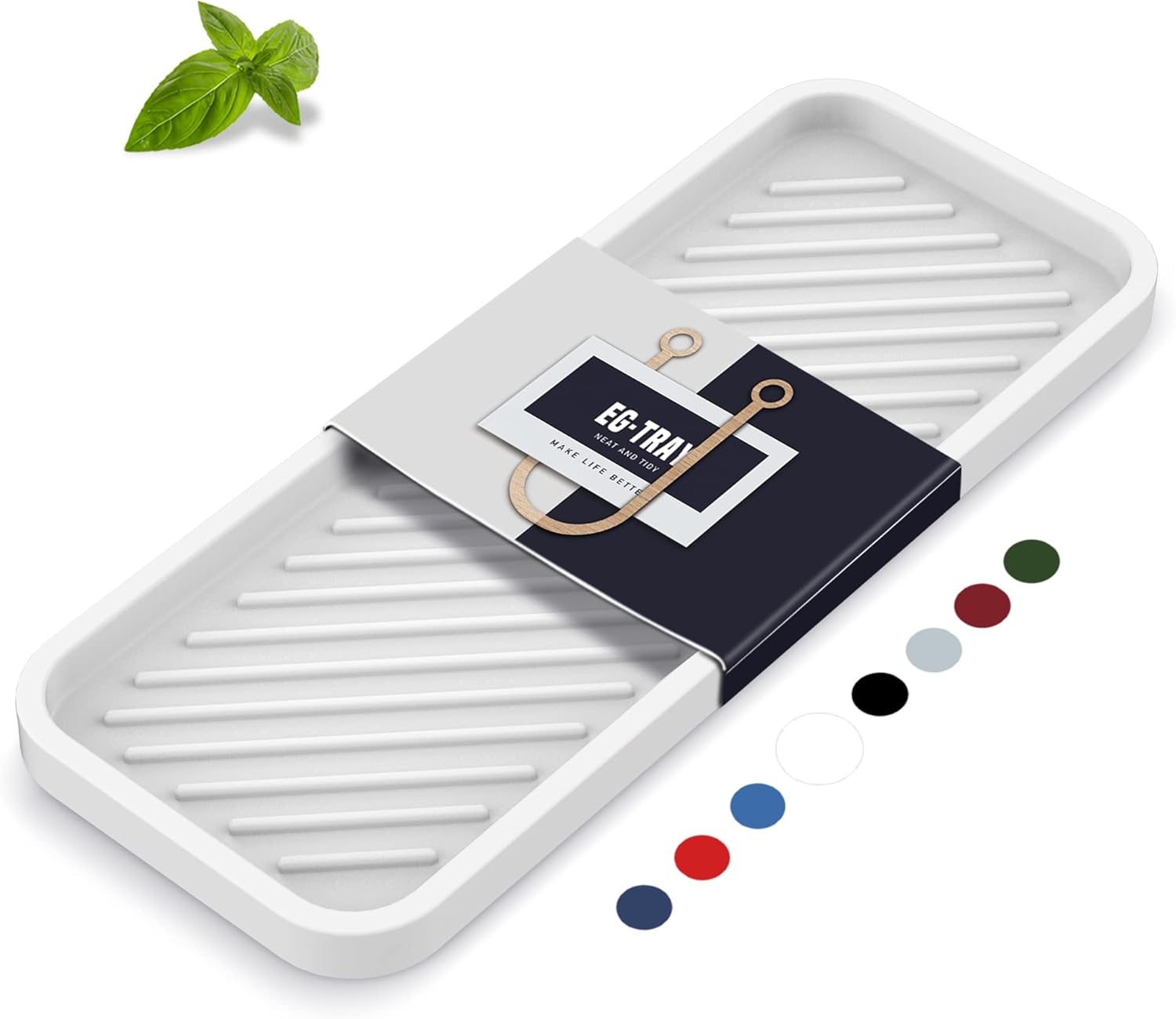 - 【Multiple Uses】Silicone tray is used in kitchen sink, bathroom countertop, living room, windowsill and other places, suitable for placing any suitable size items, such as water cups, soap dispensers, soap, cleaning cloths, small green plants, dishwashing sponges, Stainless Steel Sponges, etc. We have developed 3 sizes, 8 colors to choose from, if you buy the wrong size or don't like the color, please contact us and we will send you the product you need.