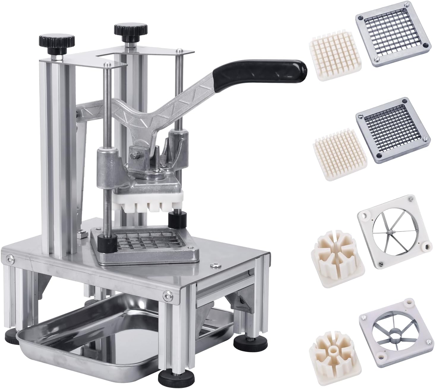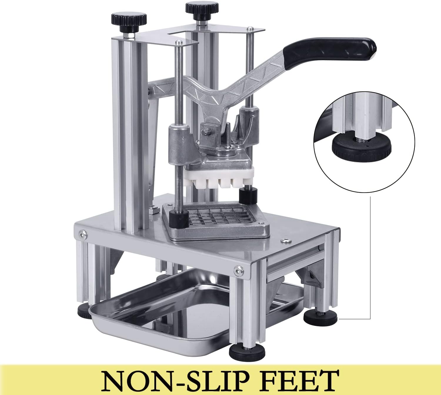 Commercial French Fries Cutter 1/4″ 3/8″ 6 Wedges 6 Wedges to Core Stainless Steel Blades Potato Slicer Fruit Chopper for Restaurant Home Kitchen Cutting, Sliver