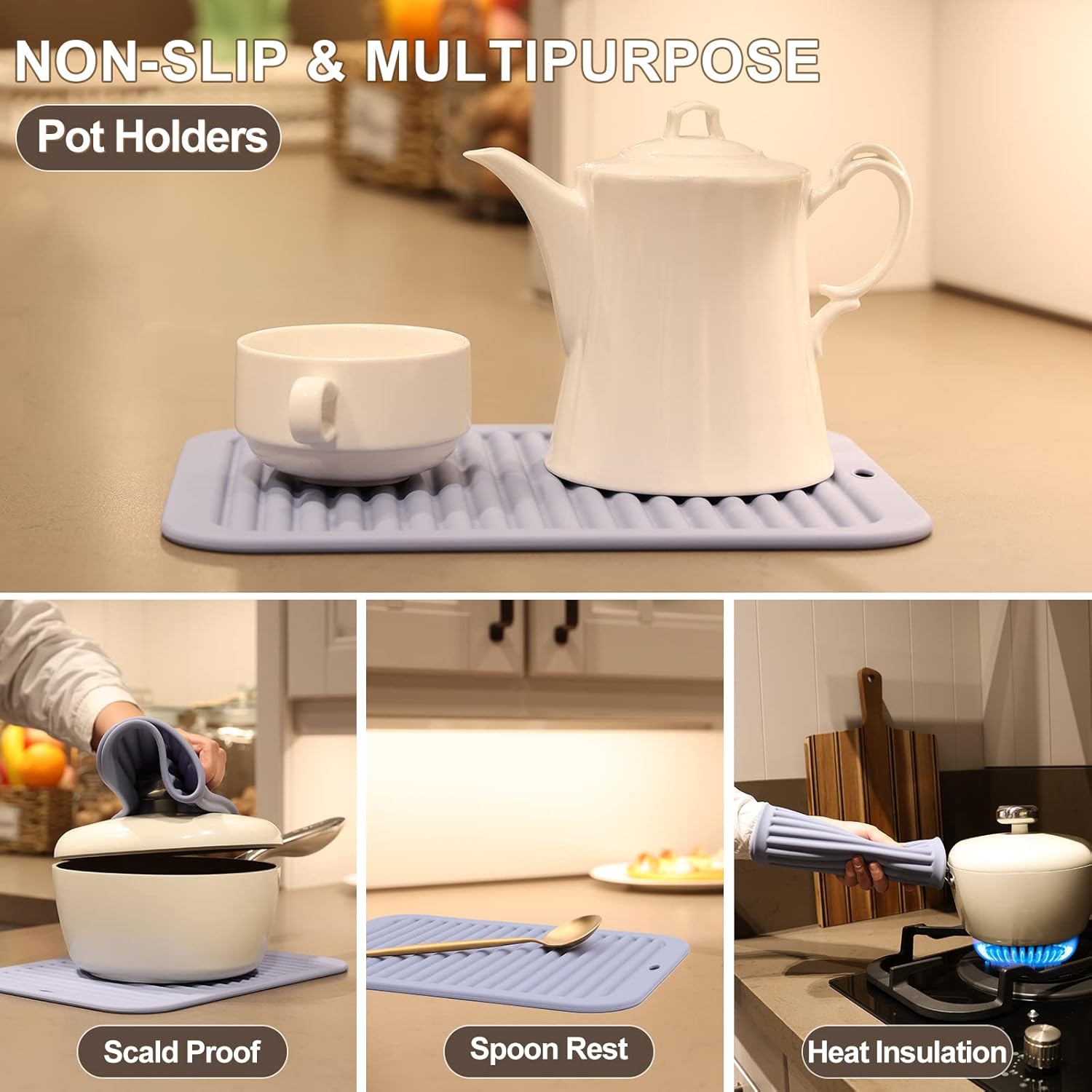 Joyhalo Silicone Trivet Mats Pot Holder Hot Pads Plate Holder Gripper Pad Garlic Peeler Drying Mat Coasters