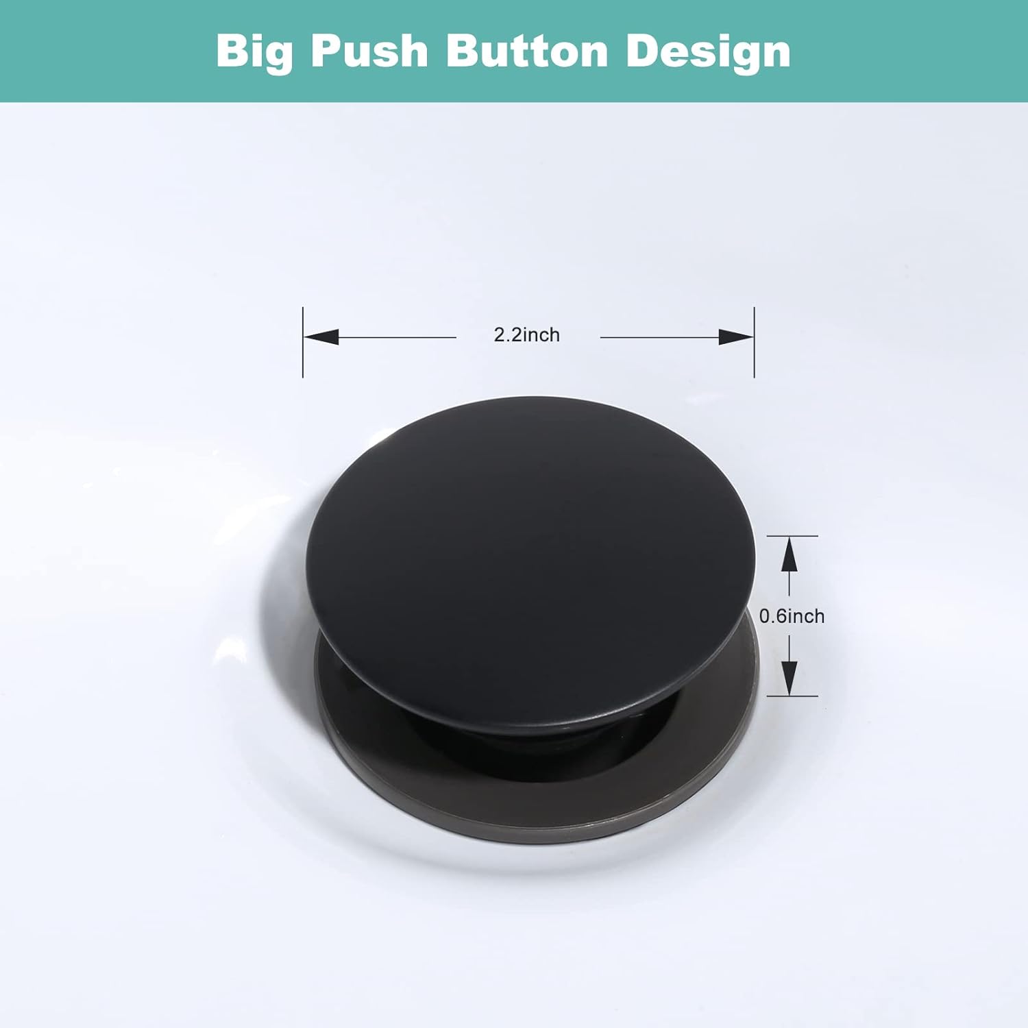 - 【Easy to Operate】 Pop up drain stopper simply push the drain down to close and to seal, push again to open and to drain water. The pop up design only needs to press lightly, and the black sink drain will quickly sprinkle water.