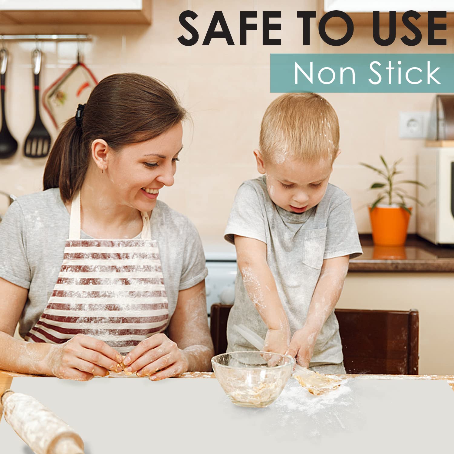 - 🍲【 100% Safe Extra Large Silicone Mat】: Sized at 27.6'' x 19.6'x 0.03"(Length x Width x Thickness), this large silicone mat is made of 100% food-grade eco-friendly silicone, BPA free, easy to cut, double-sided available, our silicone countertop mat is thicker than the average, more durable, larger use area, enough use it as a silicone placemats for kids or silicone workbench mat.