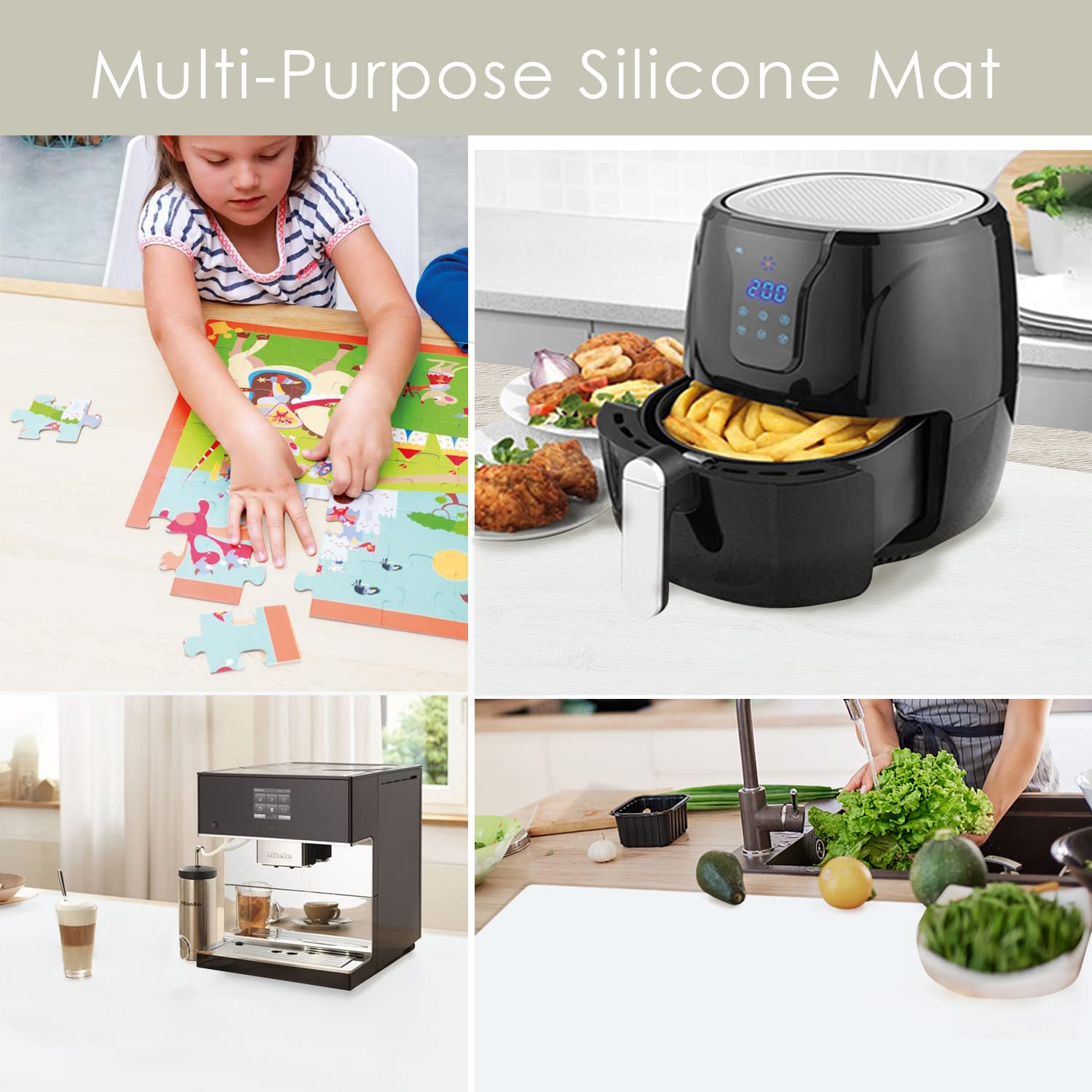- 🍳【Silicone Countertop Protector Mat】: The safe temperature is between -40°F and 446°F (≤230°C), our clear silicone heat resistant mat protects the countertop from heat damage, scratches, stains. Place the table mat under the air fryer, microwave, oven, the nonslip silicone table mat keeps extending the life of tables, enjoy your cooking more relaxedly.