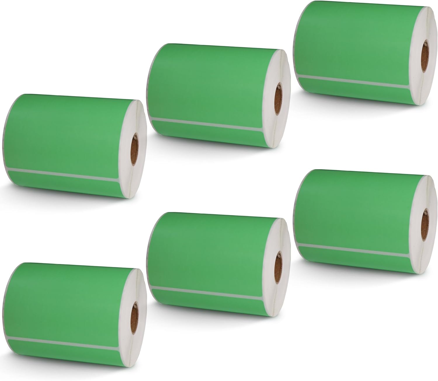 BETCKEY - 4" x 6" Shipping Labels Compatible with Zebra & Rollo Label Printer(not for dymo 4XL),Premium Adhesive & Perforated[Green, 6 Rolls, 1500 Labels]