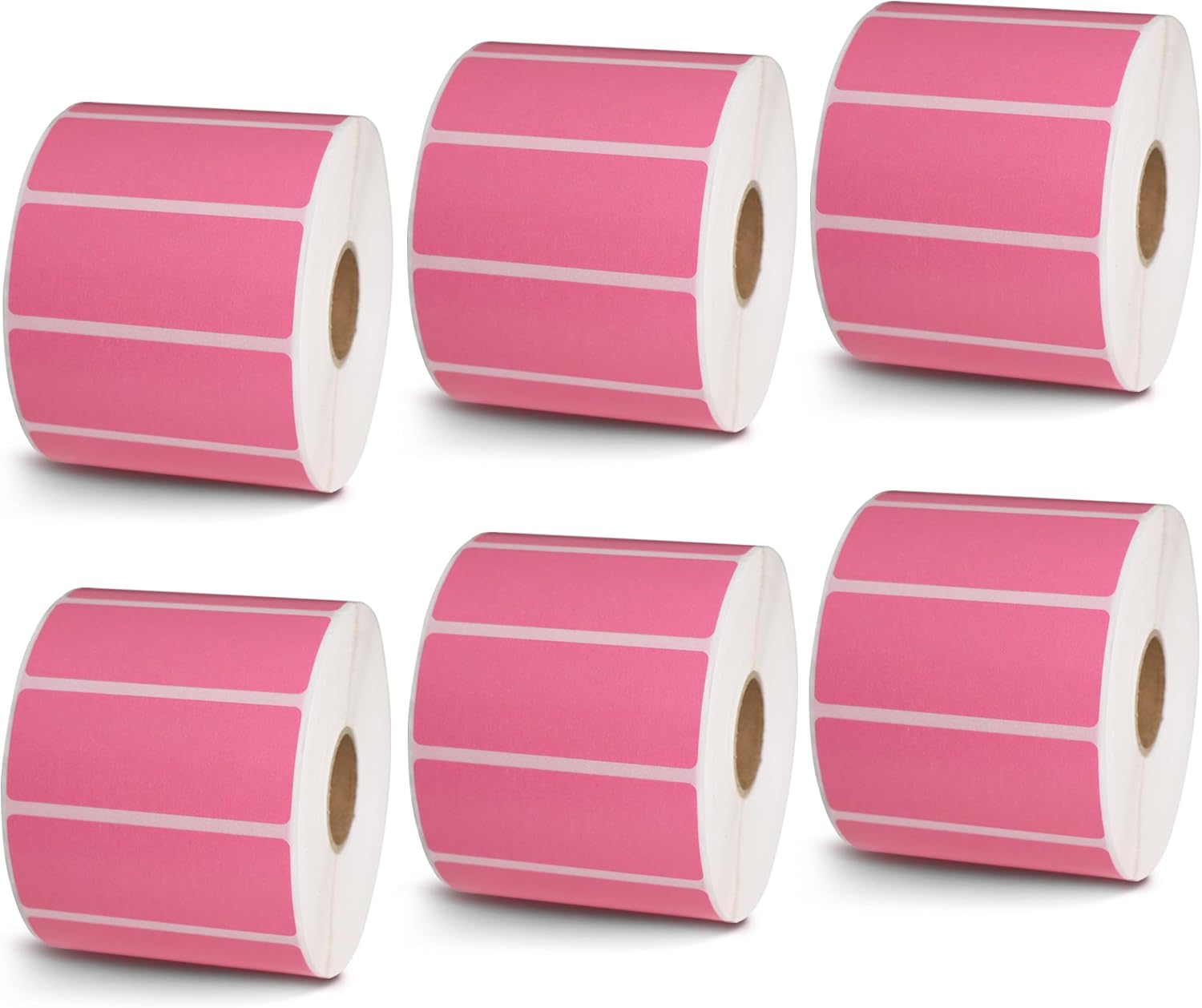 BETCKEY - 2.5" x 1" Multipurpose & Barcode Labels Compatible with Zebra & Rollo Label Printer,Premium Adhesive & Perforated[Pink, 6 Rolls, 8280 Labels]