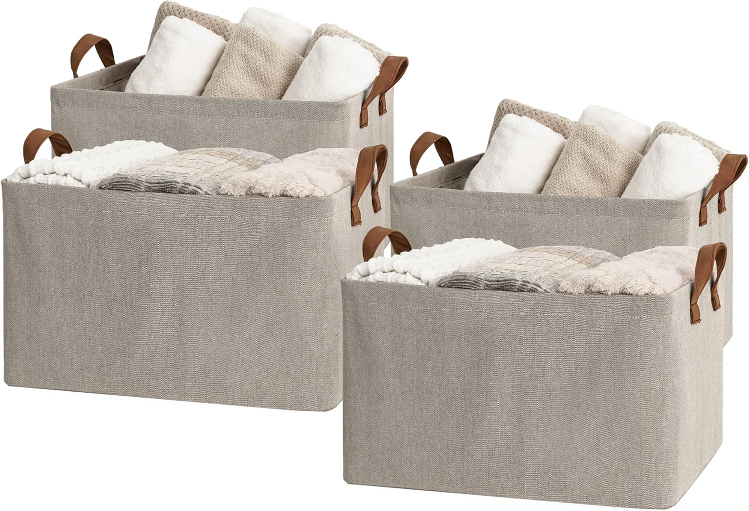 StorageWorks Storage Baskets for Shelves with Metal Frame, Organizing Bins, Fiber Shelf Baskets, Brown and Beige, 4-Pack