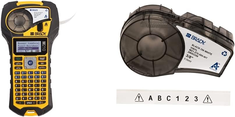 Brady M210 Portable Label Printer with Rubber Bumpers, Multi-Line Print, 6 to 40 Point Font & Authentic (M21-375-595-WT) All-Weather Vinyl Label for Indoor/Outdoor ID, Lab and Equipment Labeling