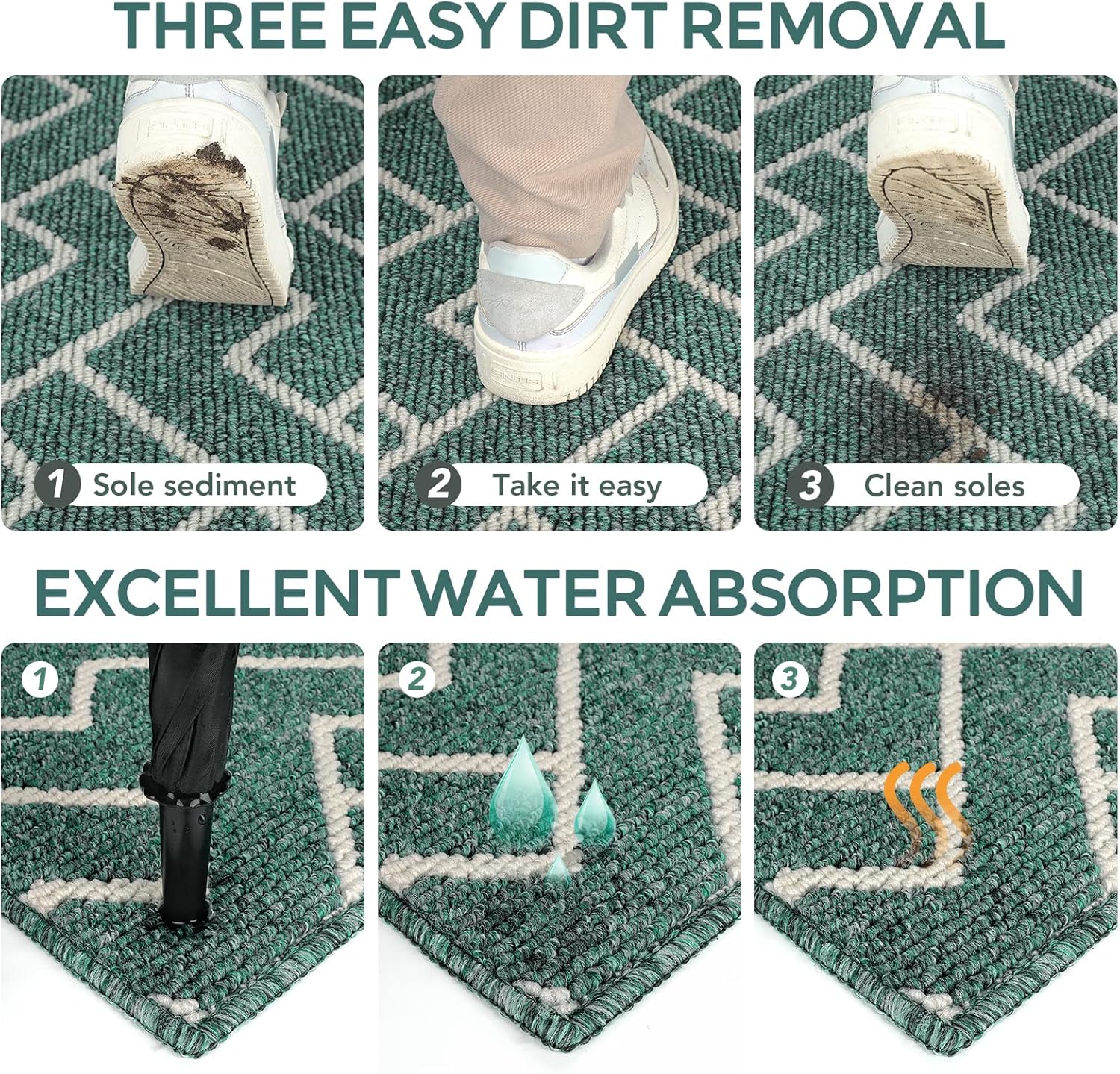 - EASY TO CLEAN: The unique rib fabric design removes dirt or sand easily. When your kitchen mats get dirty, first shake it off outdoors or over your garbage bins, then sweep with a broom or vacuum regularly or use a garden hose to rinse the mat outdoors. For deeper clean: machine washable, use water under 86 (℉) / 30 (℃). Do not iron. Do not bleach. Do not expose it to the sun for a long time.